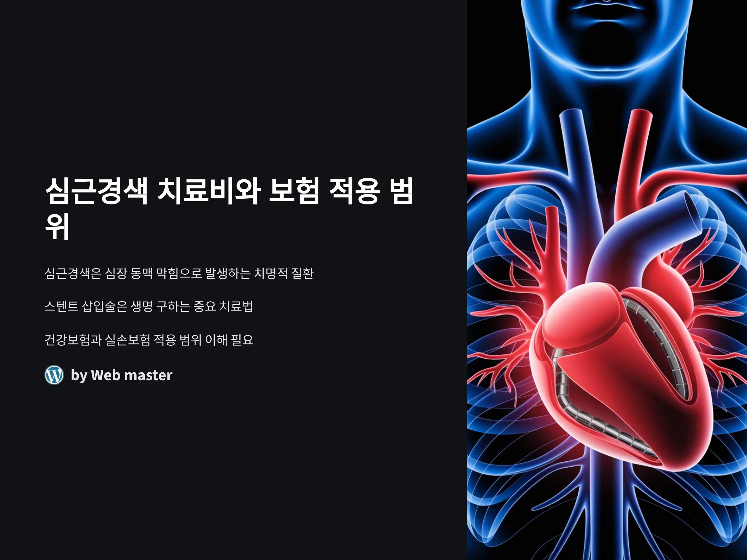 심근경색은 심장에 혈액을 공급하는 주요 동맥이 막혀 심장에 산소와 영양분이 공급되지 않아 발생하는 치명적인 질환입니다. 이를 치료하기 위한 방법 중 하나는 스텐트 삽입술입니다. 이 치료법은 혈관을 열어주는 중요한 역할을 하며, 생명을 구하는 데 중요한 기여를 합니다. 그러나 이 치료에 드는 비용은 상당히 높고, 이를 어떻게 관리할지에 대한 정보는 매우 중요합니다. 특히, 심근경색 치료비는 건강보험의 급여 기준과 실손보험의 적용 범위에 따라 달라지기 때문에, 이에 대한 정확한 이해가 필요합니다.