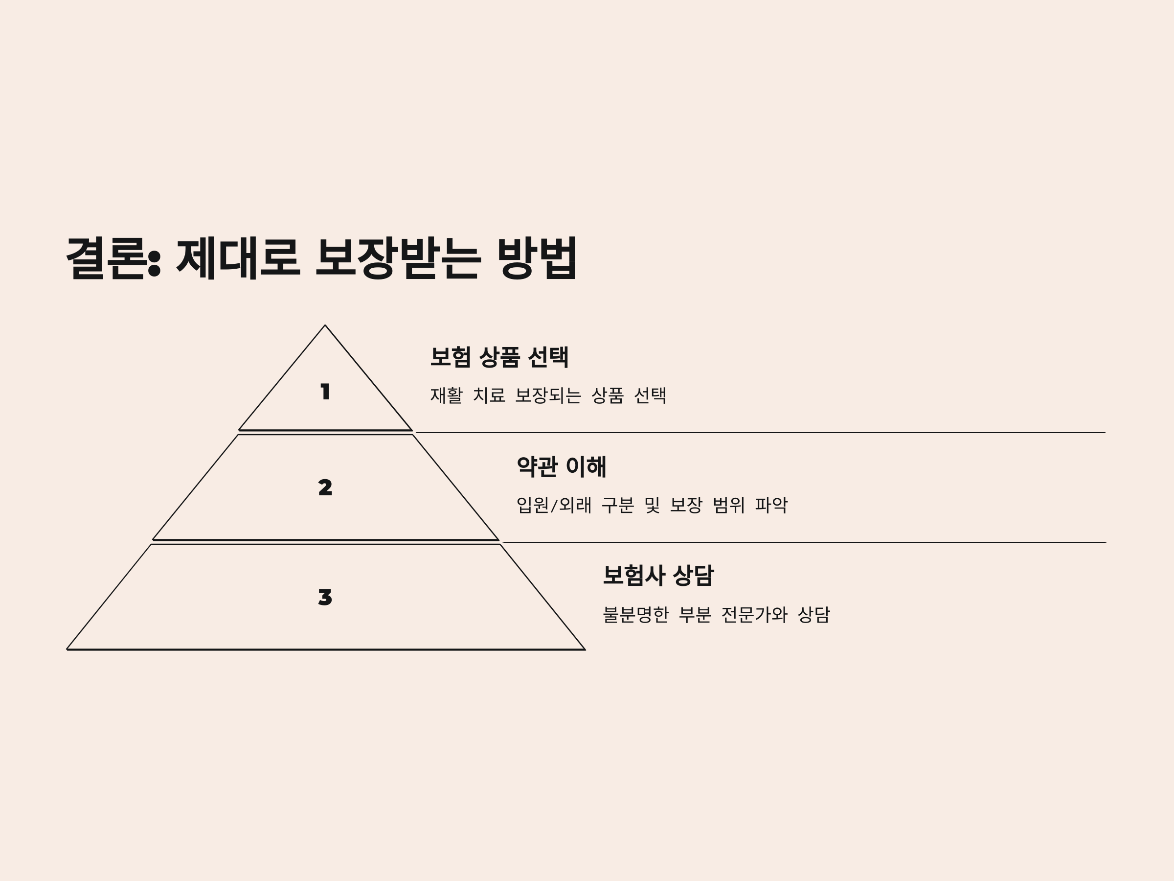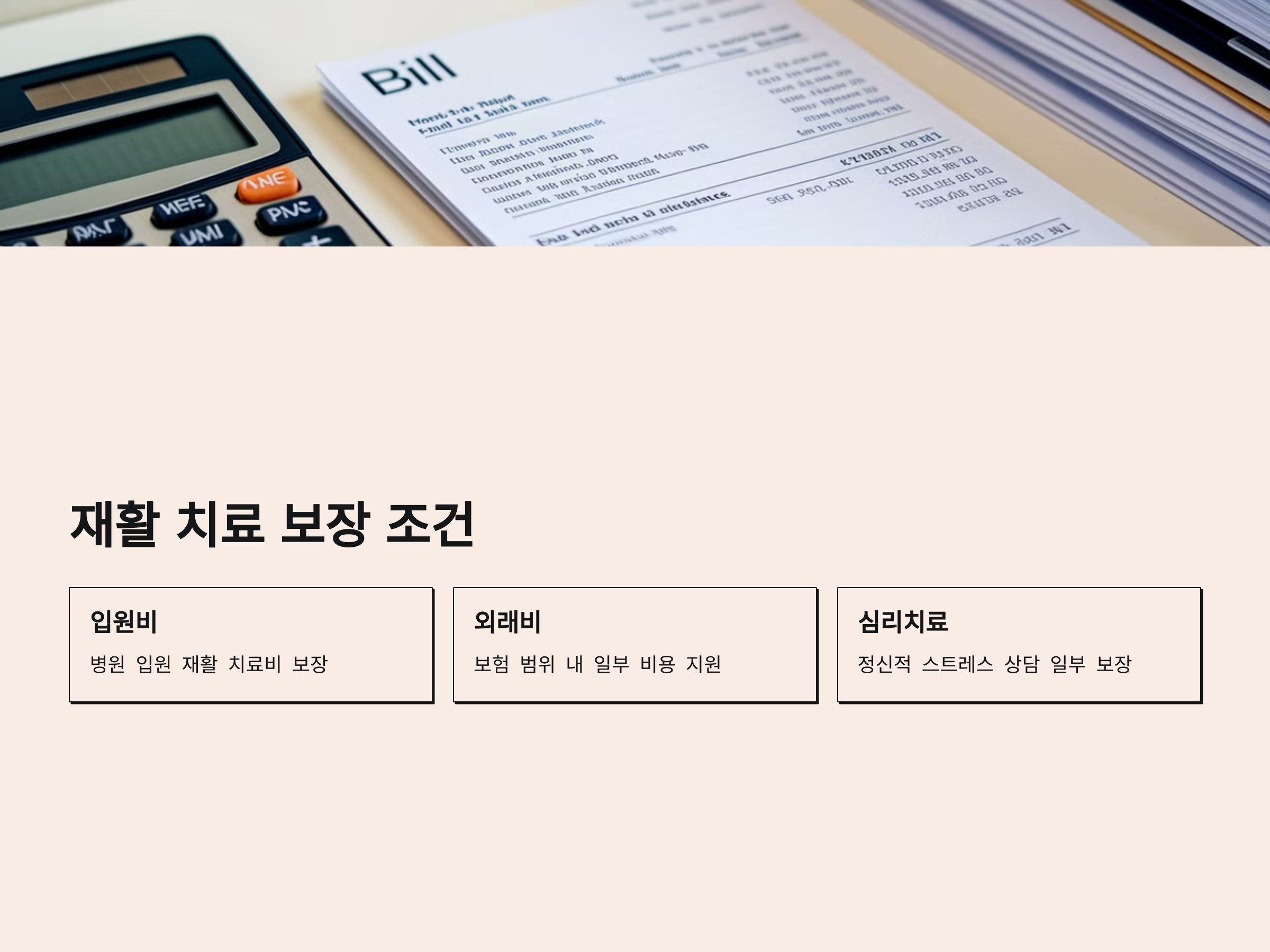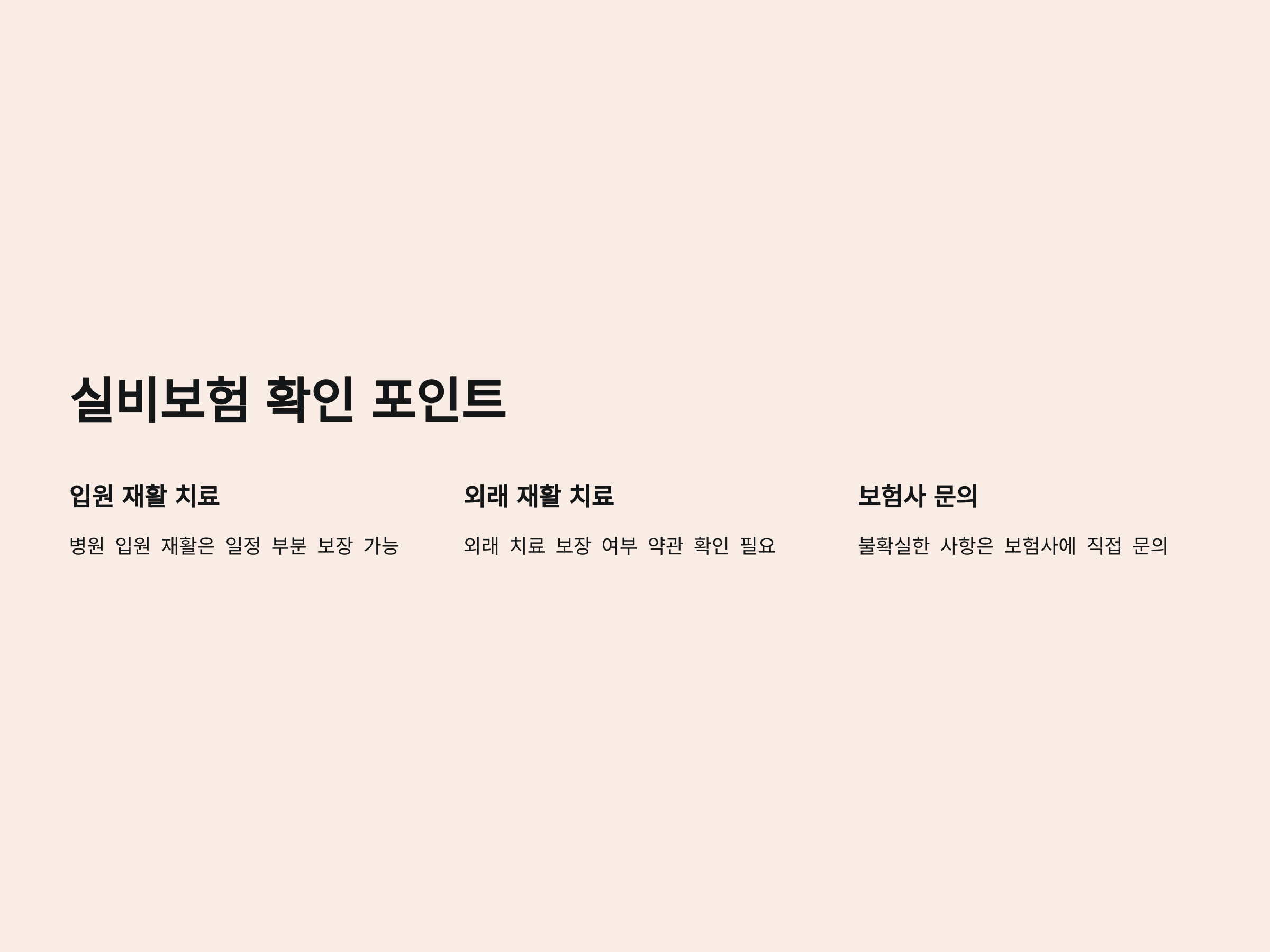 - 추가 혜택 여부: 일부 보험에서는 심리 상담, 운동 치료 등 추가적인 재활 혜택을 제공하기도 하므로 이를 확인해보세요.