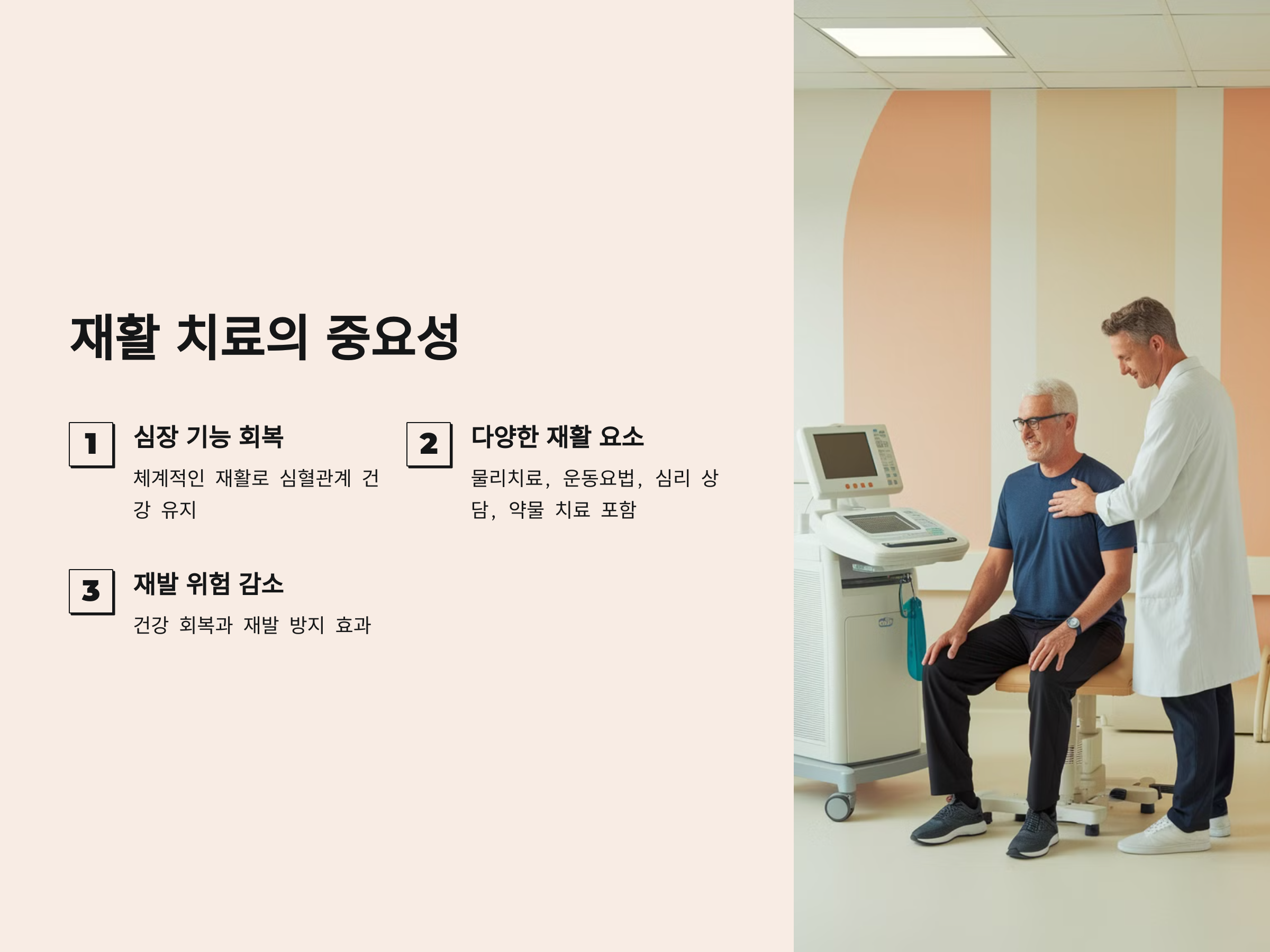 심근경색을 겪은 후에는 회복을 위한 재활 치료가 매우 중요합니다. 심장 기능을 회복하고 심혈관계의 건강을 유지하기 위해서는 체계적인 재활이 필요합니다. 재활 치료에는 물리치료, 운동요법, 심리 상담, 약물 치료 등이 포함되며, 이를 통해 환자는 건강을 회복하고 재발 위험을 줄일 수 있습니다. 그렇다면, 이런 재활 치료 비용은 실비보험으로 어느 정도 보장될까요? 실제로 심근경색 후 재활 치료의 보장 여부는 보험 상품의 조건에 따라 차이가 있습니다.