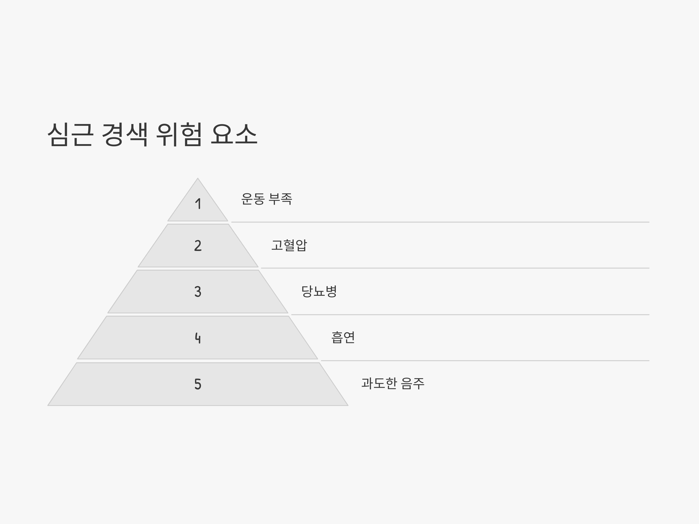 운동 부족, 고혈압, 당뇨병 등은 심근 경색의 주요 위험 요소입니다. 건강한 식습관과 규칙적인 운동을 통해 심혈관 건강을 유지하는 것이 예방의 첫걸음입니다. 또한, 흡연이나 과도한 음주를 피하고, 스트레스를 줄이는 것도 큰 도움이 됩니다.