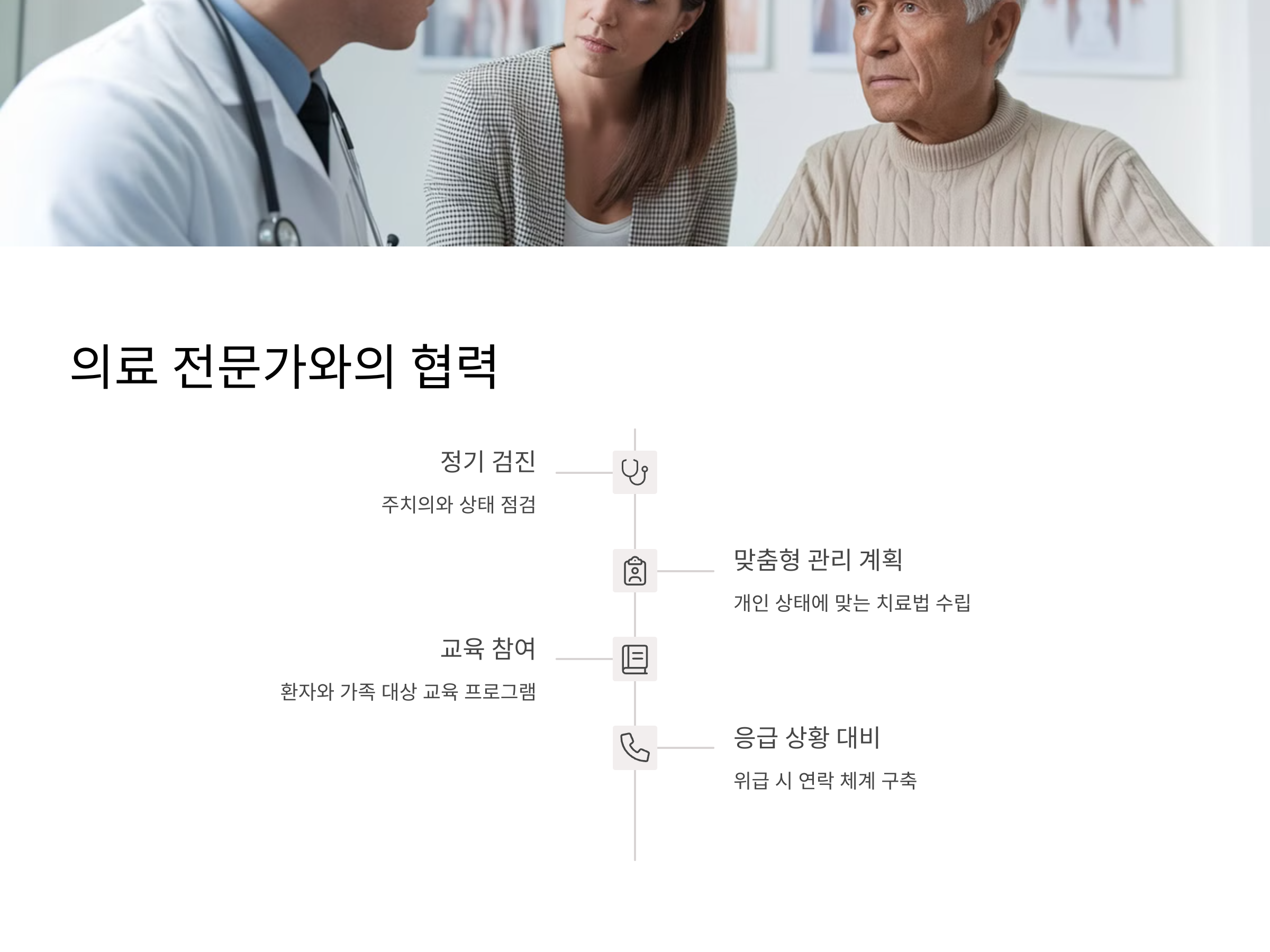 심부전 말기의 부종과 체중 증가를 효과적으로 관리하기 위해서는 전문적인 치료가 필요합니다. 주치의와의 협력을 통해 약물 치료를 최적화하고, 개인의 상태에 맞는 관리 계획을 수립하는 것이 중요합니다. 또한, 병원에서 제공하는 교육을 통해 환자와 가족들이 부종 관리에 대한 올바른 지식을 갖추는 것도 큰 도움이 됩니다.
