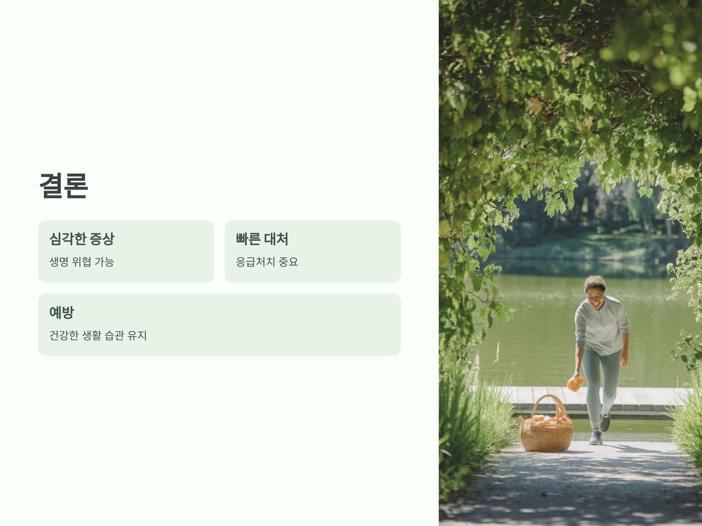 심장마비와 호흡곤란은 생명을 위협할 수 있는 심각한 증상입니다. 빠른 응급처치와 적절한 대처가 필요하며, 예방을 위한 건강한 생활 습관이 중요합니다. 심장마비와 호흡곤란의 증상을 알게 되었다면, 이를 미리 예방하고, 발생 시 빠르게 대처하는 것이 가장 중요합니다.