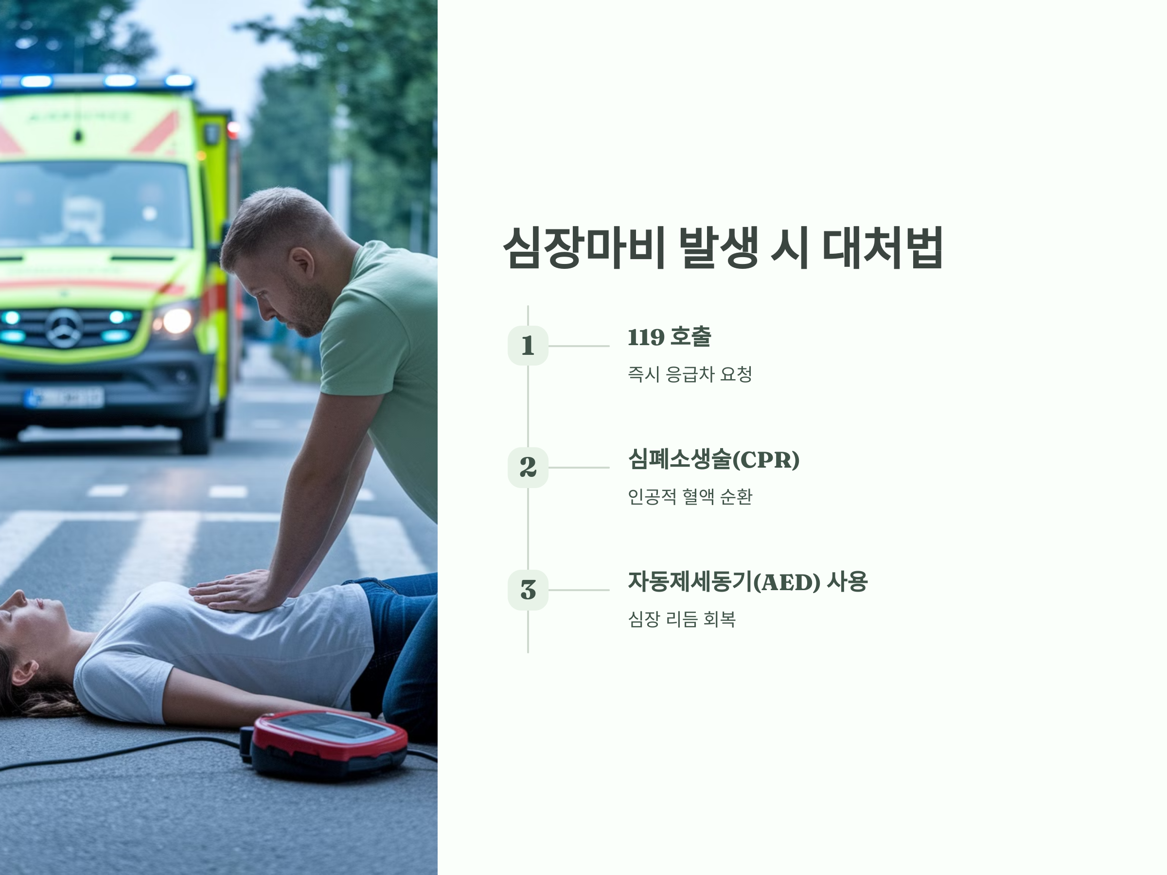 심장마비가 발생했을 때 가장 중요한 것은 시간입니다. 빠르게 응급처치를 하면 생명을 구할 수 있는 확률이 높아집니다. 심장마비 증상을 확인했다면, 다음과 같은 단계를 따라야 합니다: