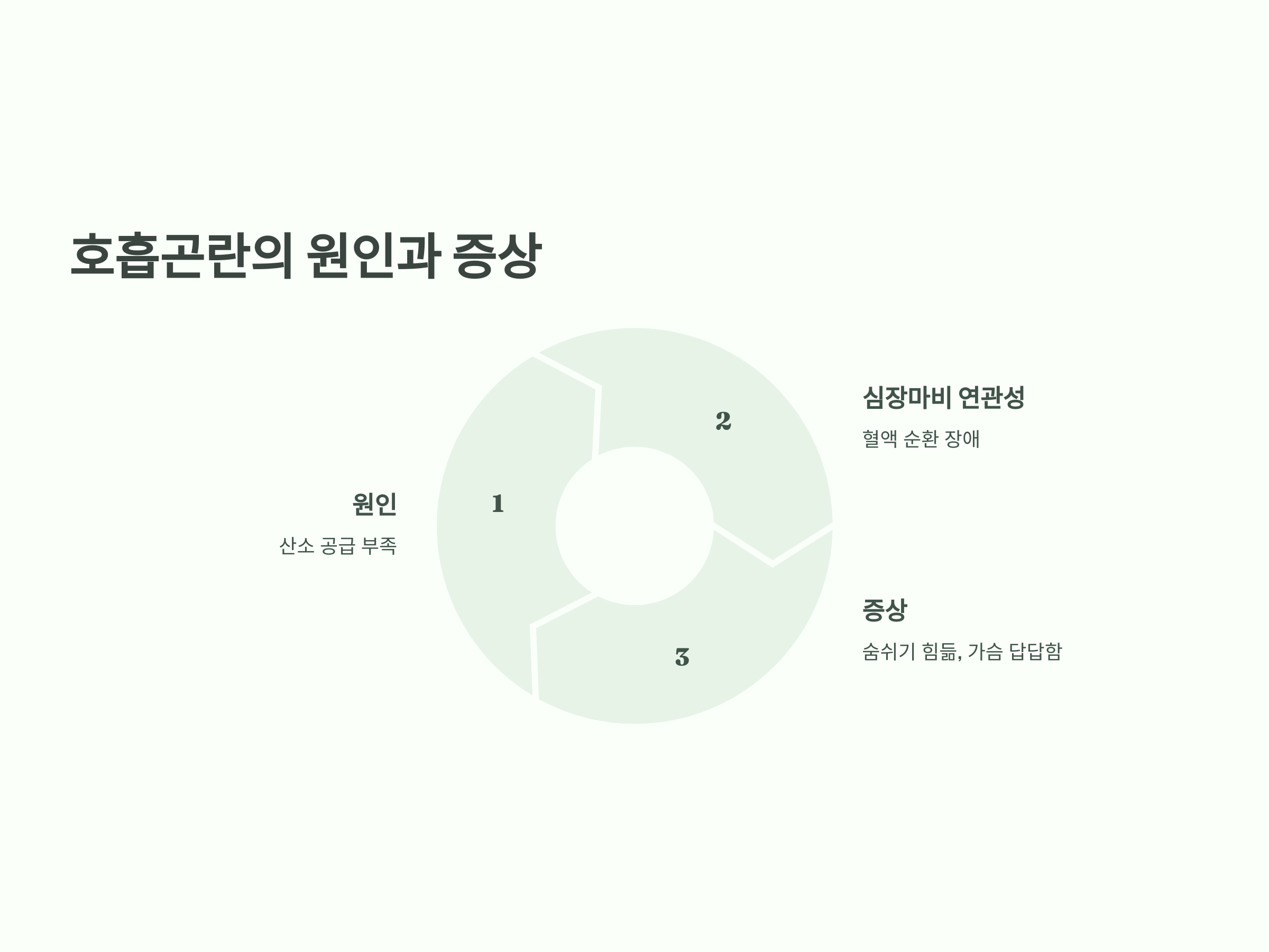호흡곤란은 산소 공급이 원활하지 않아서 발생하는 증상으로, 신체가 정상적인 호흡을 하지 못하는 상태를 말합니다. 여러 원인에 의해 호흡곤란이 발생할 수 있는데, 그중 심장마비가 주요 원인 중 하나입니다. 심장마비가 발생하면 심장이 제 기능을 하지 못하고 혈액이 제대로 순환하지 않기 때문에 폐와 몸 전체에 산소가 부족해져 호흡이 어려워지게 됩니다.