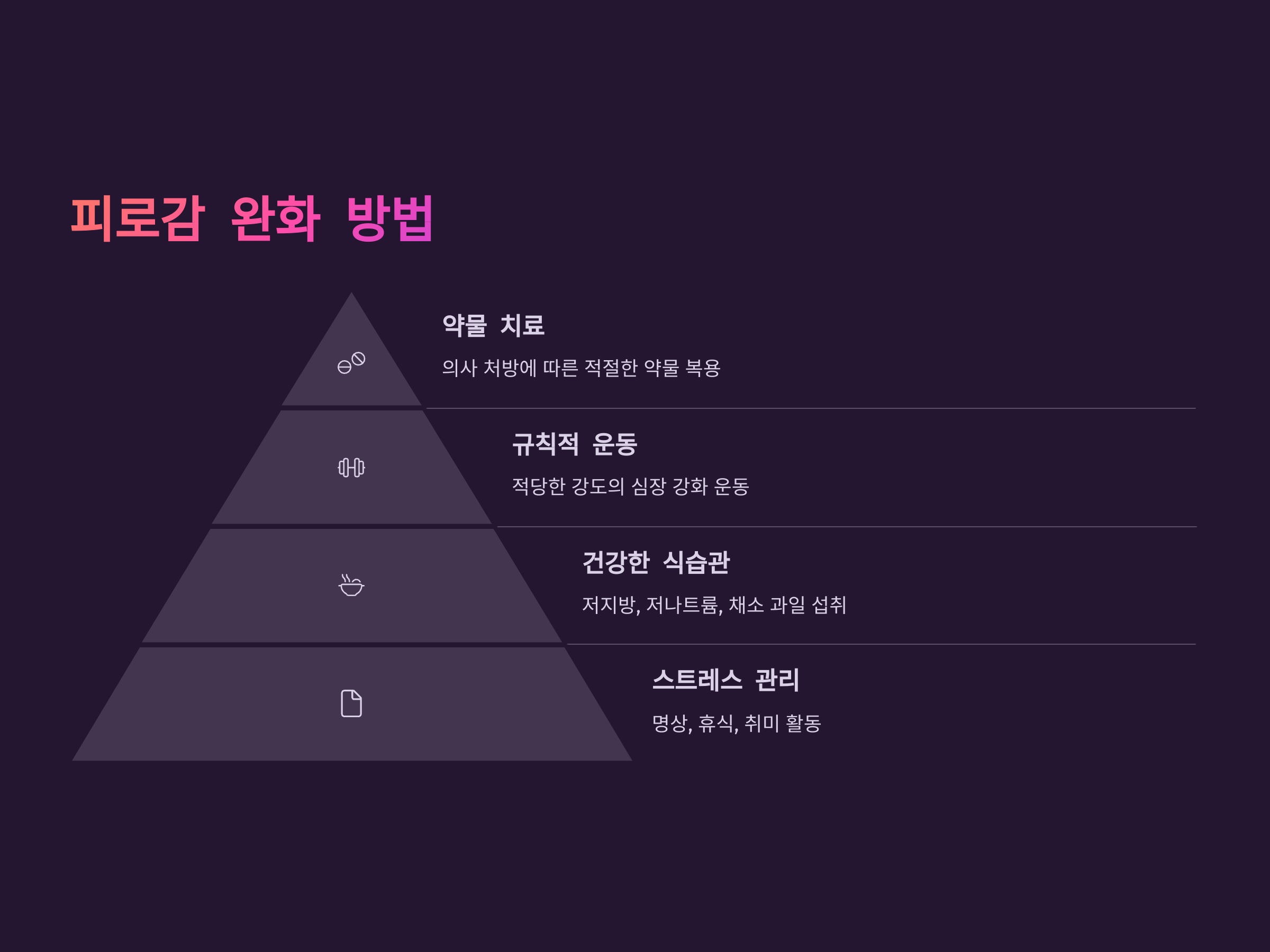 - 규칙적인 운동: 운동은 심장의 건강을 개선하고 혈액 순환을 원활하게 만들어 피로감을 줄이는 데 도움이 됩니다. 하지만 과도한 운동은 오히려 부정맥을 악화시킬 수 있으므로 적당한 운동을 하는 것이 중요합니다.
