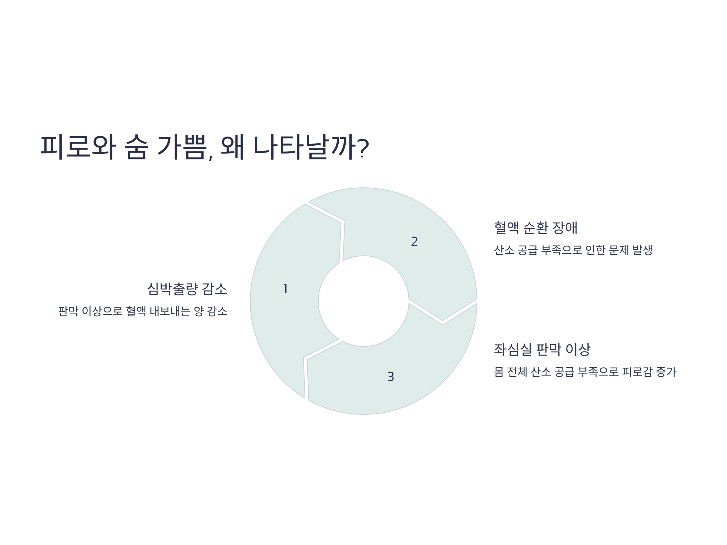 심장 판막 이상으로 인한 피로와 숨 가쁨은 주로 심박출량 감소와 관련이 있습니다. 심박출량은 심장이 혈액을 내보내는 양을 말하는데, 판막이 제대로 기능하지 않으면 심장이 필요한 만큼의 혈액을 내보내지 못하게 됩니다. 이로 인해 혈액 순환이 원활하지 않아 산소 공급이 부족해지고, 그 결과 피로감을 느끼게 됩니다.