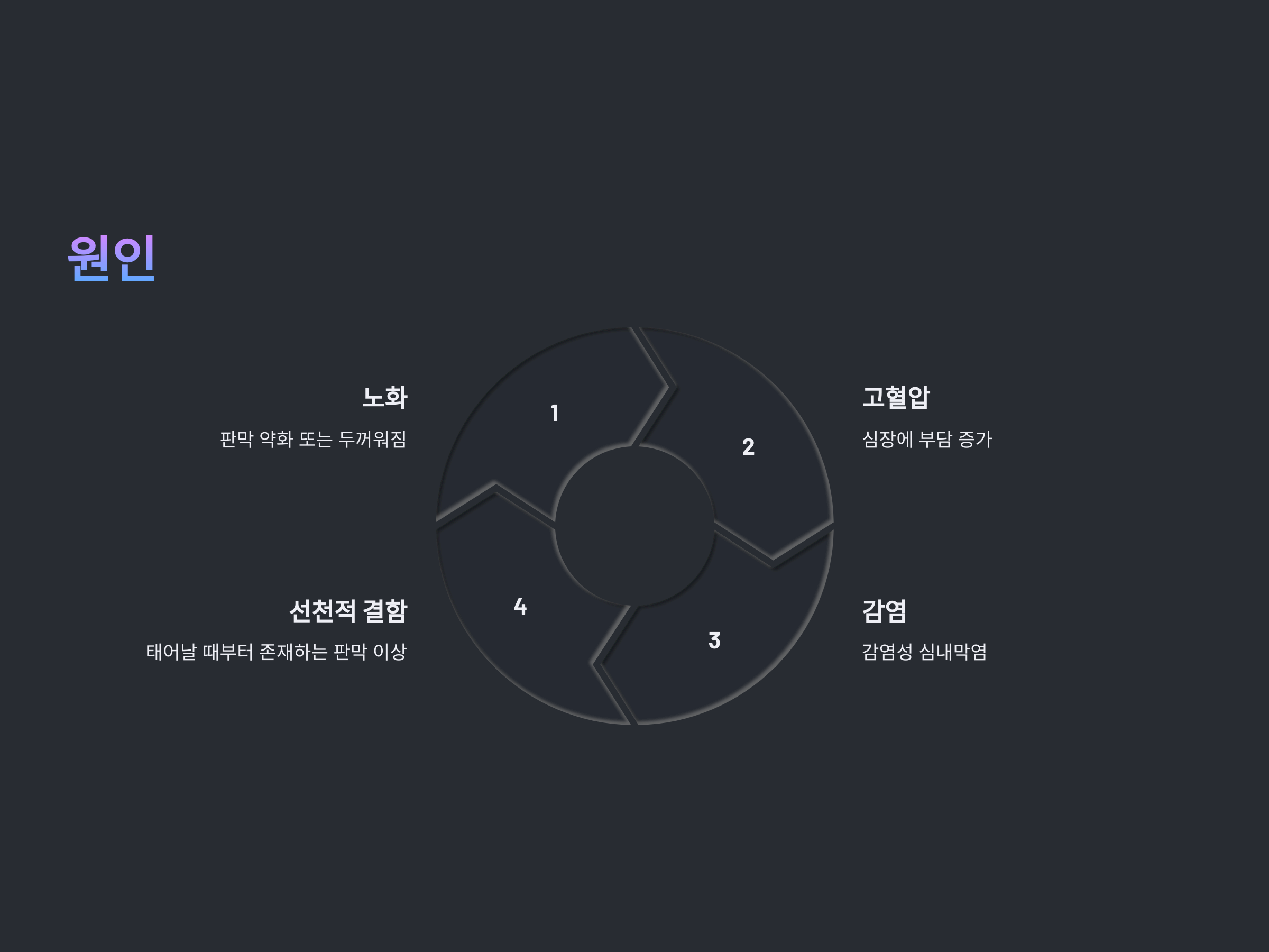나이가 들면서 심장 판막은 자연스럽게 약해지거나 두꺼워질 수 있습니다. 이로 인해 판막이 제대로 닫히지 않거나, 협착되어 혈액 흐름에 문제가 생깁니다.