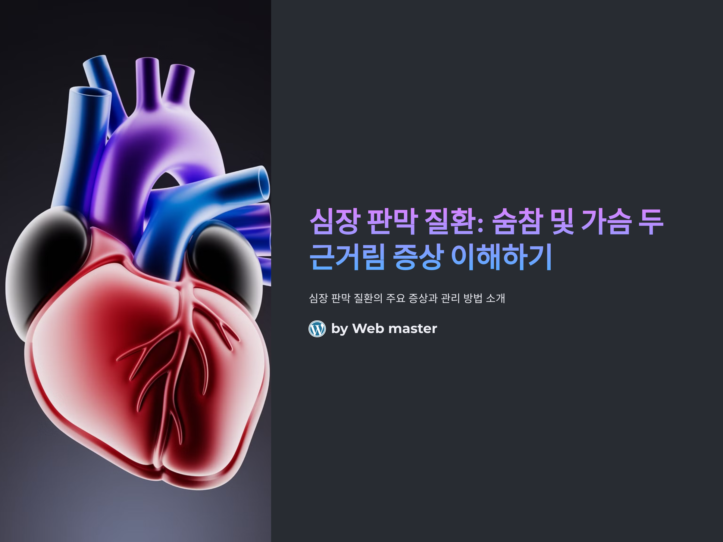 심장 판막 질환의 증상은 그 종류와 정도에 따라 다르지만, 가장 흔하게 나타나는 증상은 숨참과 가슴 두근거림입니다. 특히, 일상적인 활동을 하면서도 숨이 차거나 가슴이 두근거리는 느낌을 자주 경험하게 됩니다.