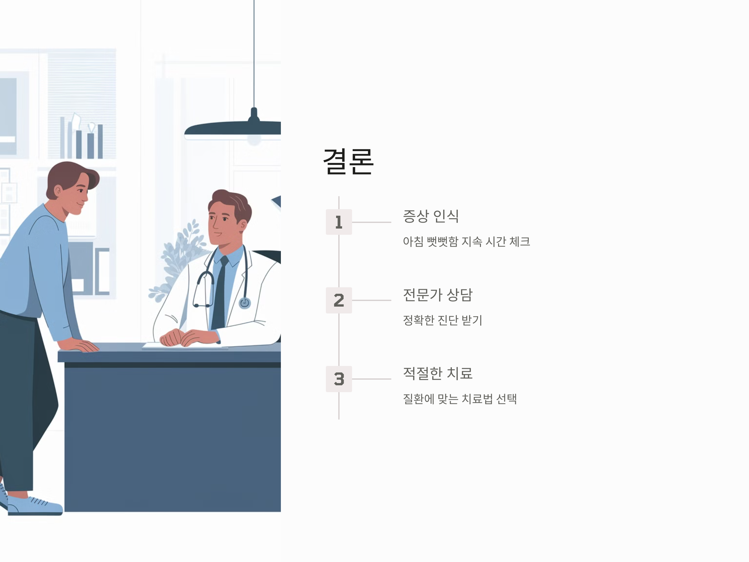각각의 질환에 대해 정확한 진단을 받고, 적절한 치료를 받는 것이 중요합니다. 만약 손가락의 뻣뻣함이 장기간 지속되거나 통증이 심하다면 전문가의 상담을 받는 것이 좋습니다.