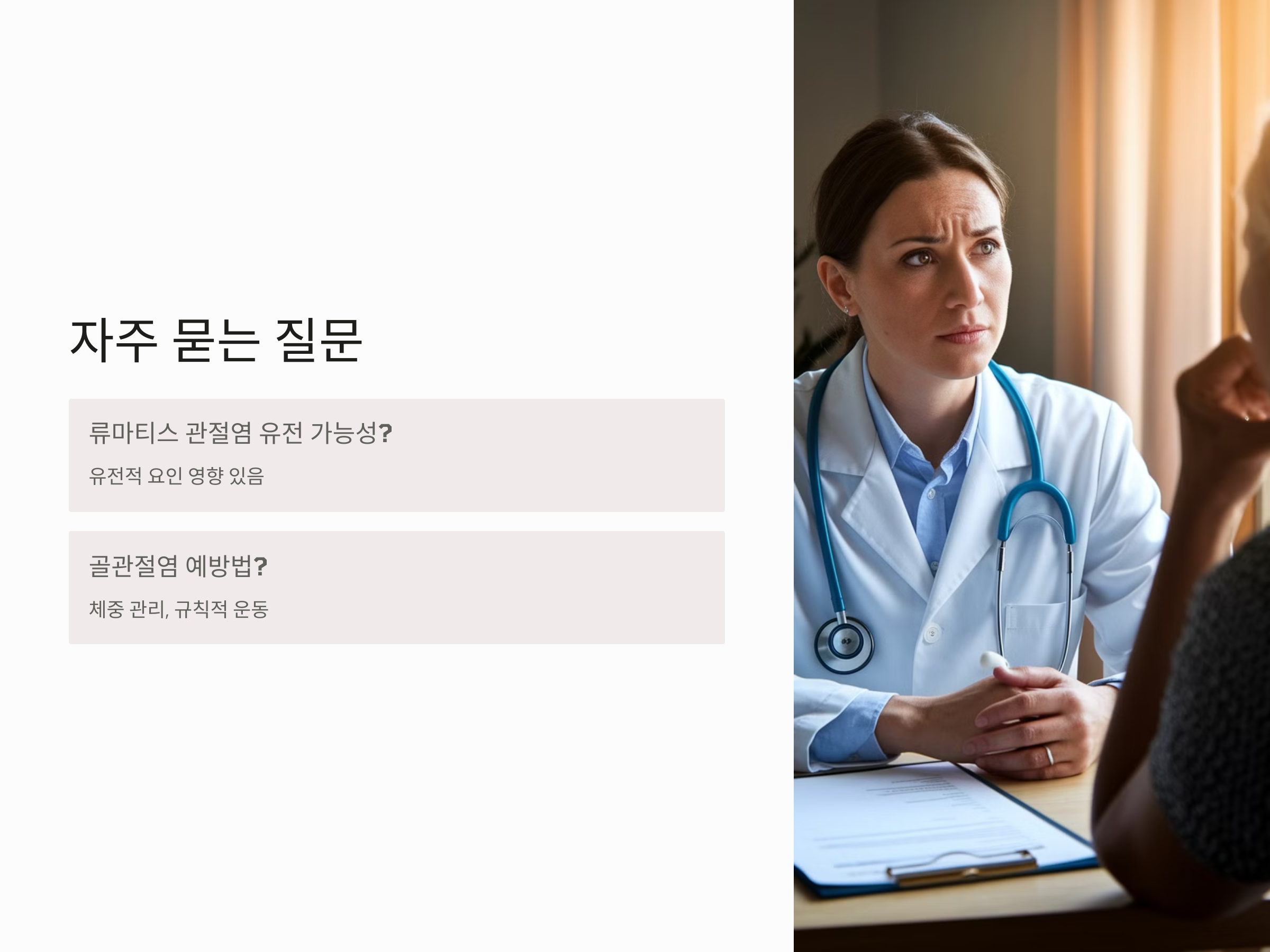 - 장기적 관절 손상: 치료하지 않으면 관절이 변형되거나 손상될 수 있습니다.