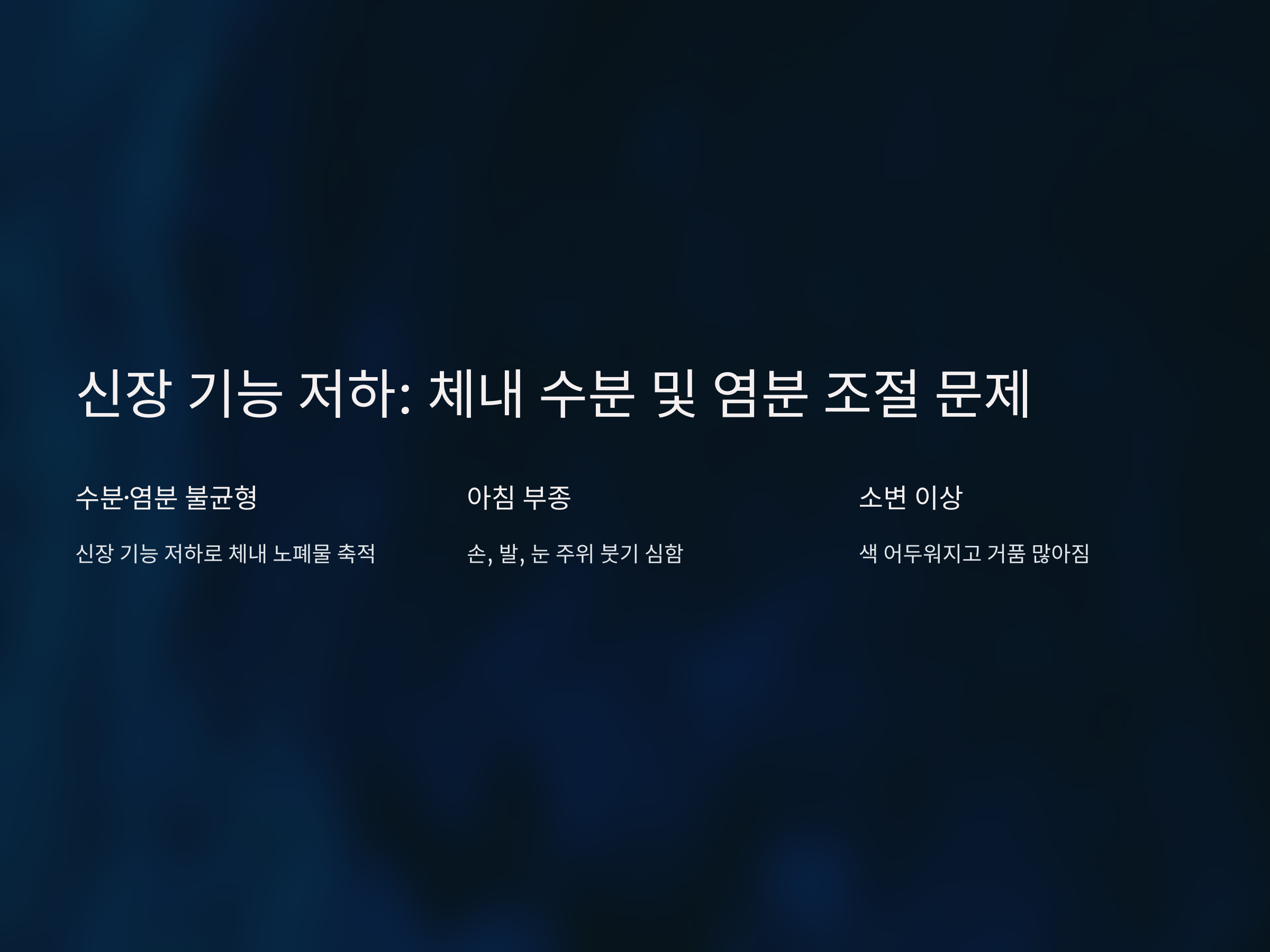 신장 기능 저하: 체내 수분 및 염분 조절 문제
