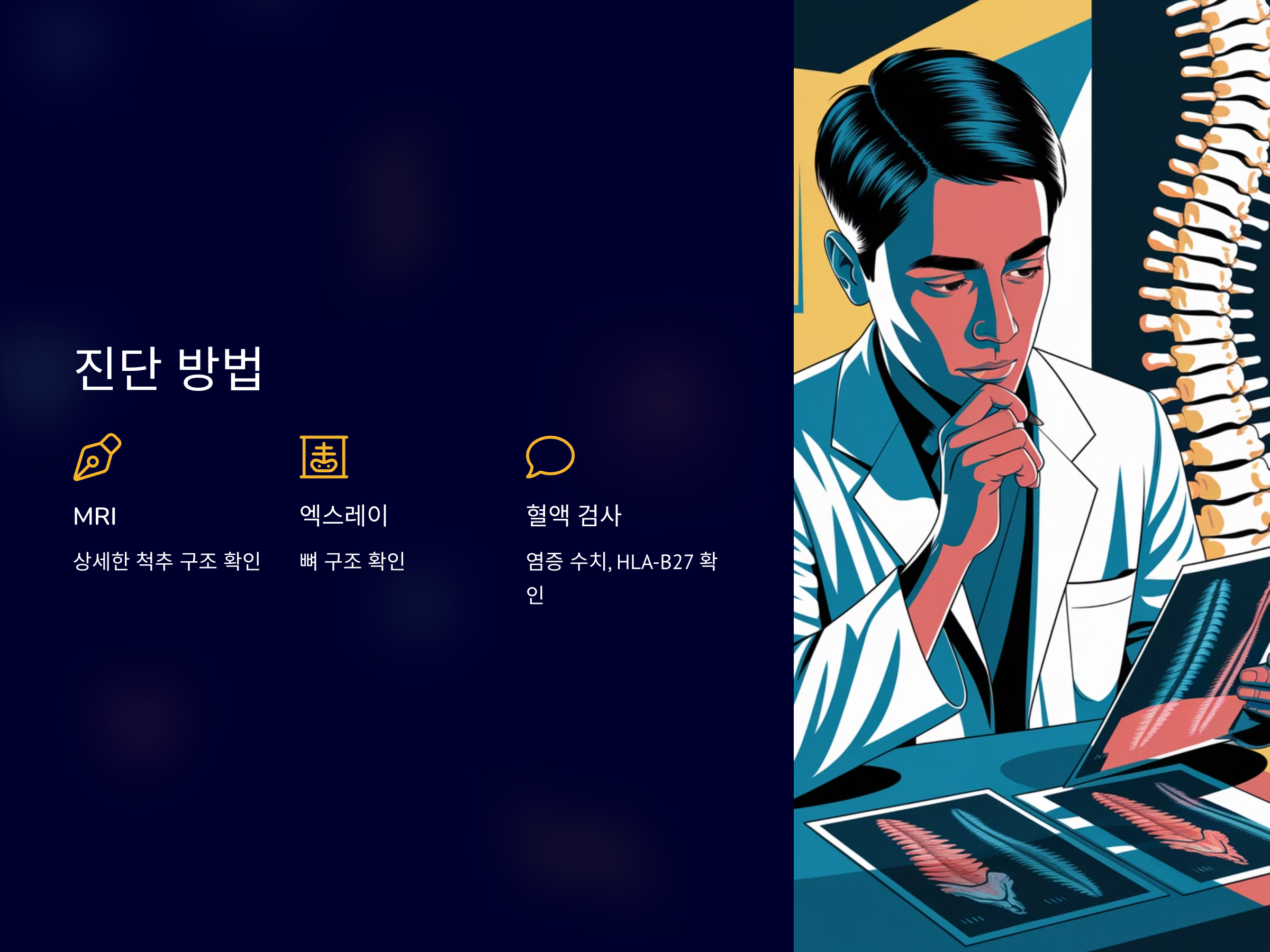 강직성 척추염은 MRI, 엑스레이, 혈액 검사 등을 통해 진단할 수 있습니다. 특히, HLA-B27 유전자 검사도 중요한 진단 지표가 될 수 있습니다.