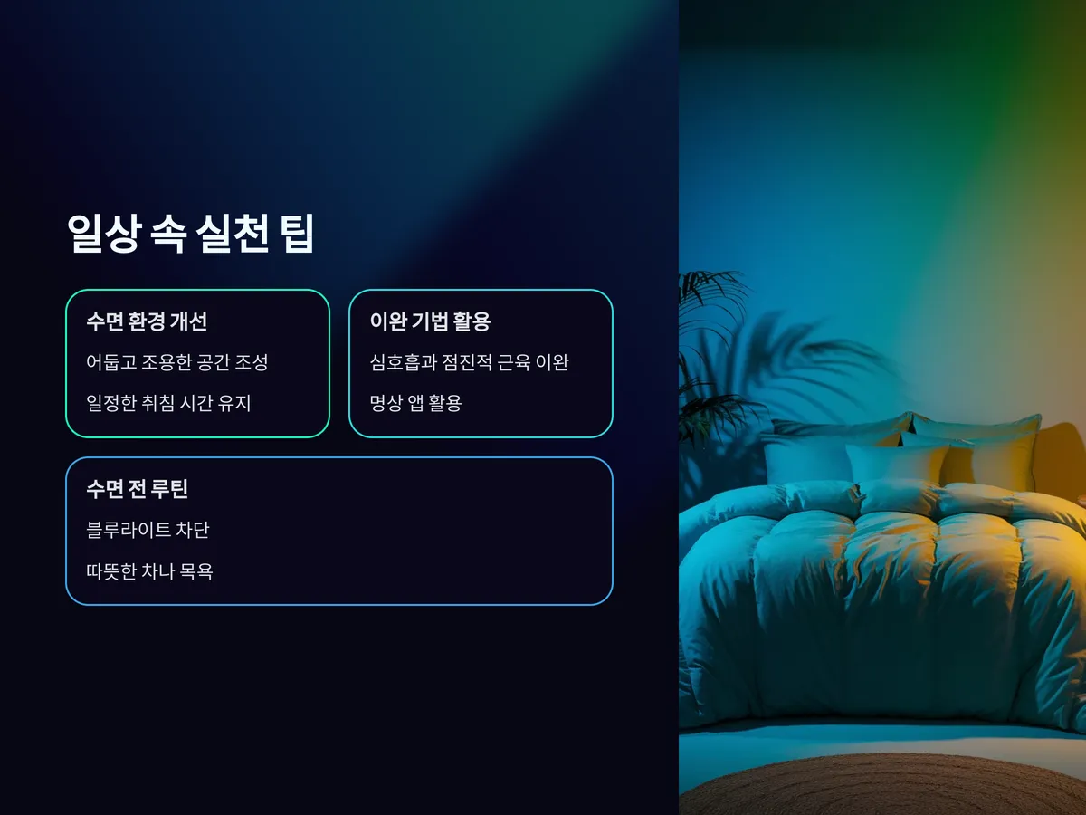최근 미국 정신의학협회에서는 PTSD 관련 수면 장애 치료에 '이미지 리허설 치료(Image Rehearsal Therapy)'의 임상효과를 발표하였으며, 국내 정신건강복지센터 또한 수면장애에 특화된 진료과와 디지털 기반 상담 도입을 본격화하고 있습니다. 이 글에서는 PTSD로 인한 불면증과 악몽의 원인을 구체적으로 설명하고, 효과적인 치료 방법과 생활 속 실천 팁, 최신 트렌드를 중심으로 불면의 악순환을 끊을 수 있는 방법을 소개합니다. 이를 통해 독자 여러분이 "다시 잘 수 있다"는 희망을 갖고 한 발짝 더 나아갈 수 있기를 바랍니다.
