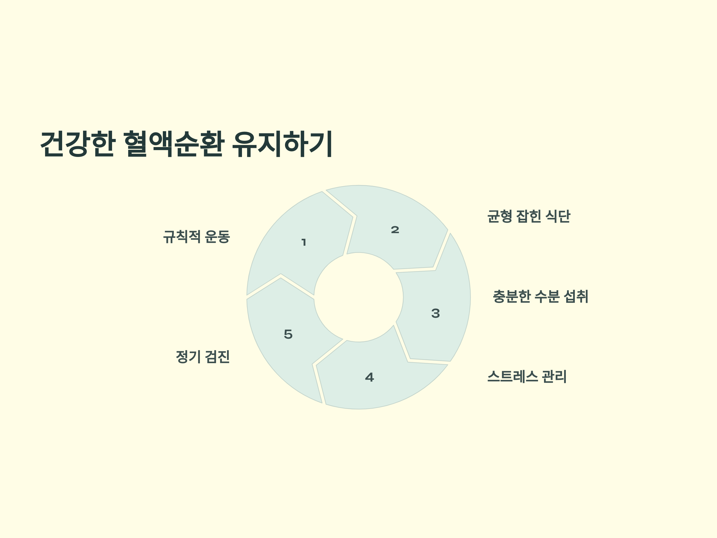 스트레스는 혈관을 수축시키므로, 명상이나 취미 생활을 통해 관리하는 것이 중요합니다.