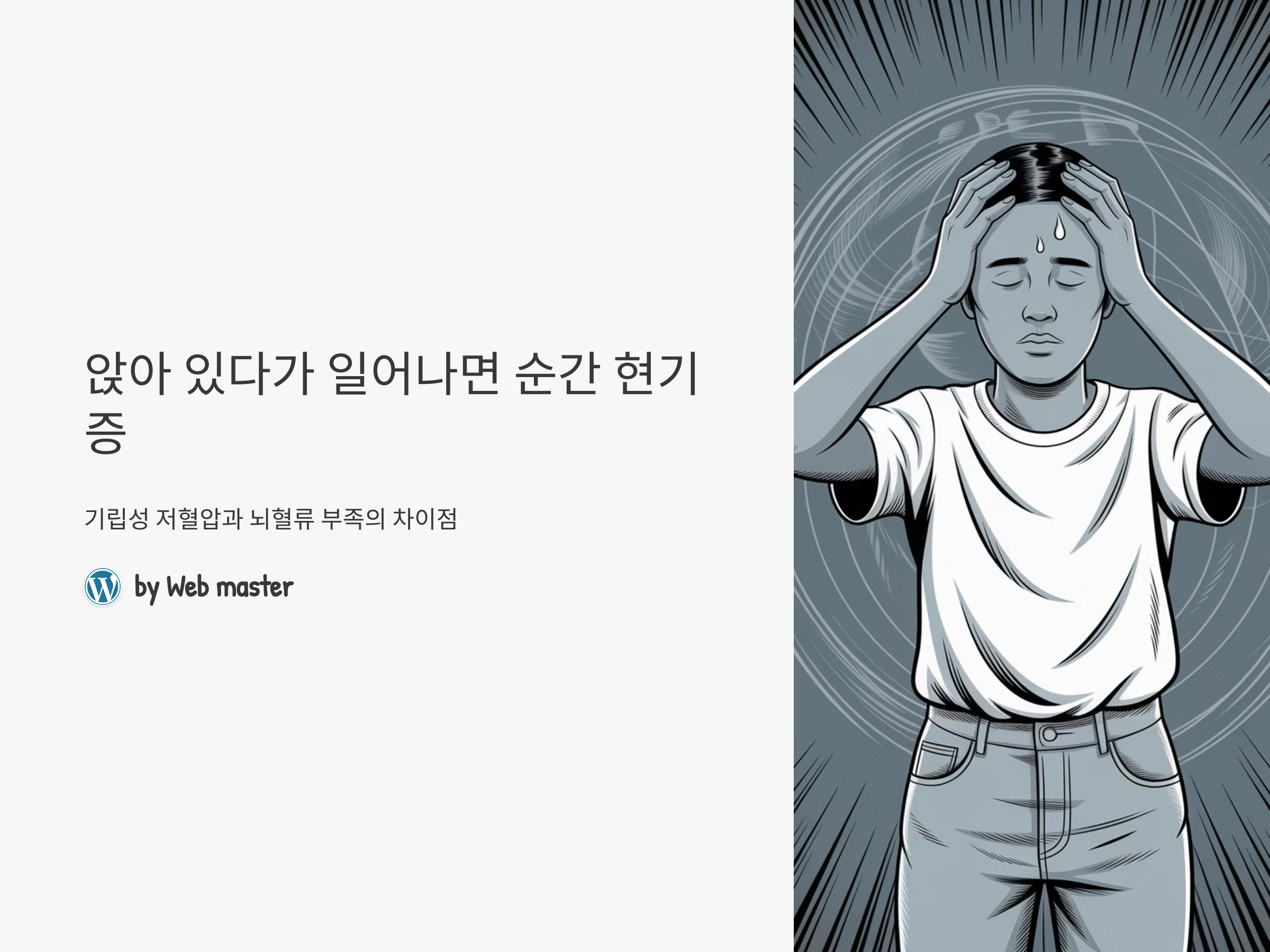 앉아 있다가 일어설 때 경험하는 현기증의 원인으로 기립성 저혈압과 뇌혈류 부족을 의심할 수 있습니다. 이 두 가지 증상은 비슷한 증상을 보이지만, 그 원인과 대처 방법은 다르므로, 정확한 원인을 파악하는 것이 중요합니다. 현기증이 자주 발생한다면, 생활 습관을 개선하고, 필요시 전문가의 진료를 받아 적절한 치료를 받는 것이 좋습니다.