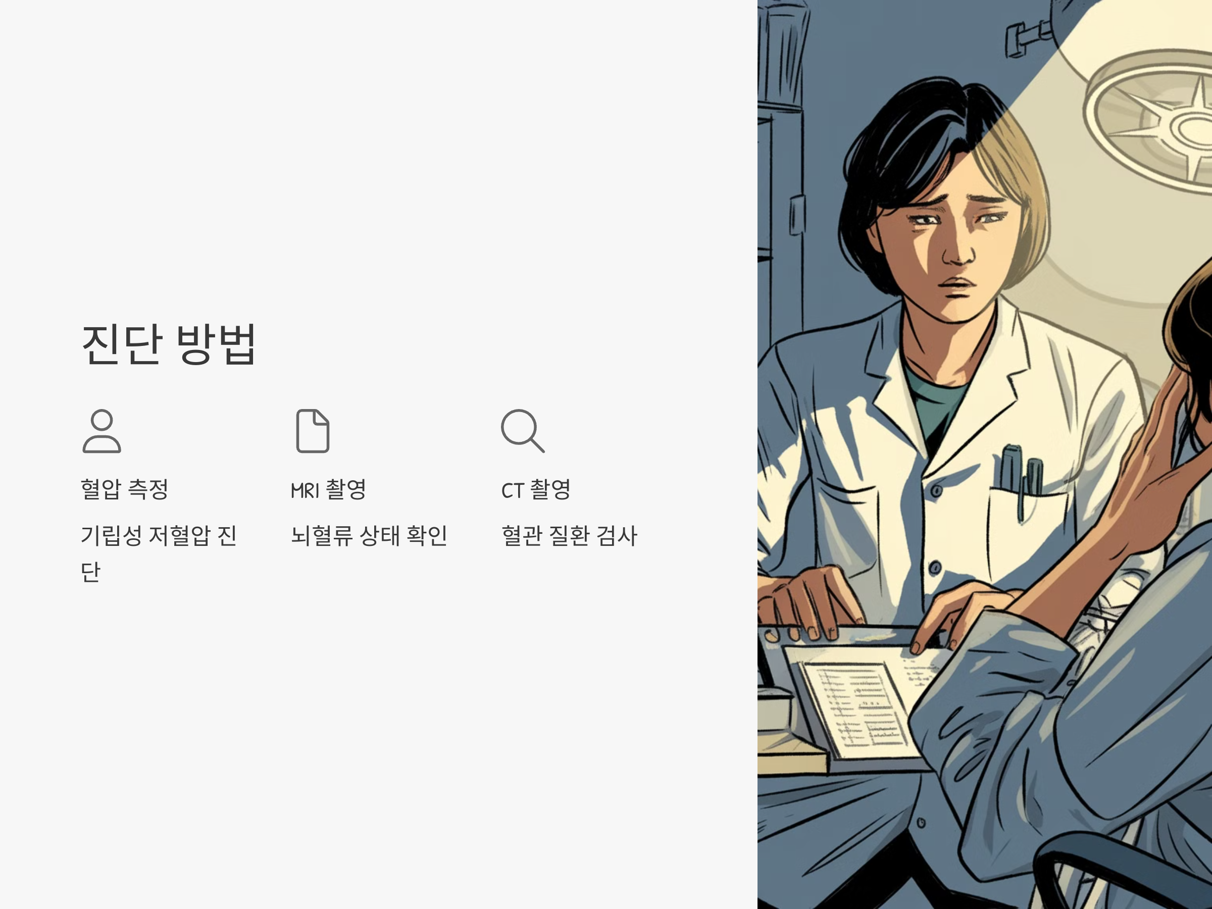 기립성 저혈압과 뇌혈류 부족을 구분하려면 정확한 진단이 필요합니다. 기립성 저혈압의 경우, 혈압 측정을 통해 진단할 수 있으며, 일어설 때 혈압이 급격히 떨어지는지 확인하는 방법이 주로 사용됩니다. 뇌혈류 부족은 MRI나 CT 촬영을 통해 뇌의 혈류 상태를 확인할 수 있으며, 심장 질환이나 다른 혈관 질환이 동반되었는지 검사할 수 있습니다.