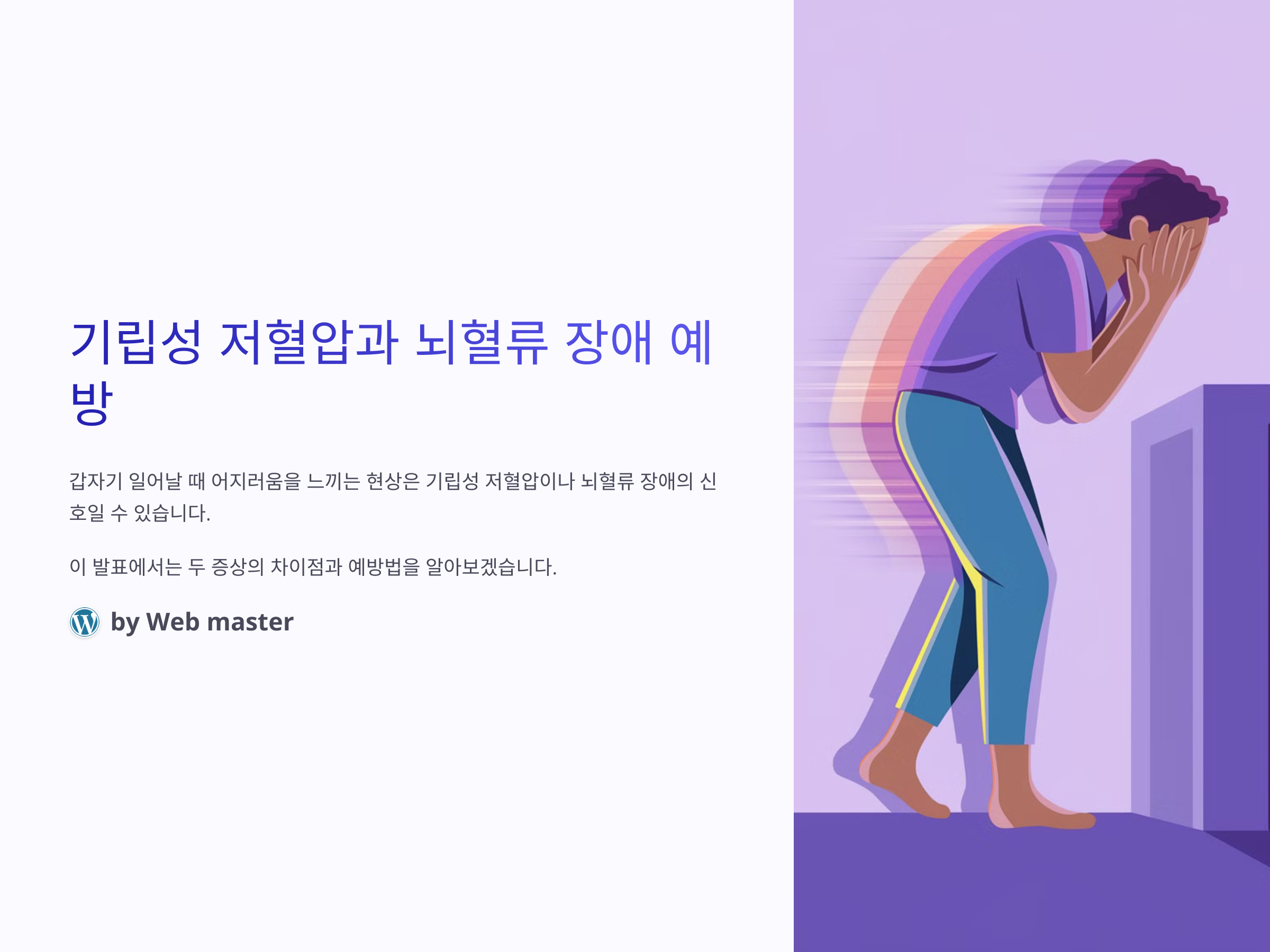 갑자기 일어날 때 어지러움을 느낀 경험이 있다면 기립성 저혈압이 원인일 수 있습니다. 이 현상은 앉아 있거나 누워 있을 때 혈액이 하체에 집중되고, 일어날 때 갑자기 혈액이 위쪽으로 이동하면서 뇌로 가는 혈류가 일시적으로 부족해져 발생합니다. 그러나 일시적인 어지러움이 단순한 기립성 저혈압 때문인지, 아니면 심각한 뇌혈류 장애의 신호인지 구분하는 것이 중요합니다. 이 글에서는 기립성 저혈압과 뇌혈류 장애의 차이를 살펴보고, 이를 예방할 수 있는 방법에 대해 알아보겠습니다.