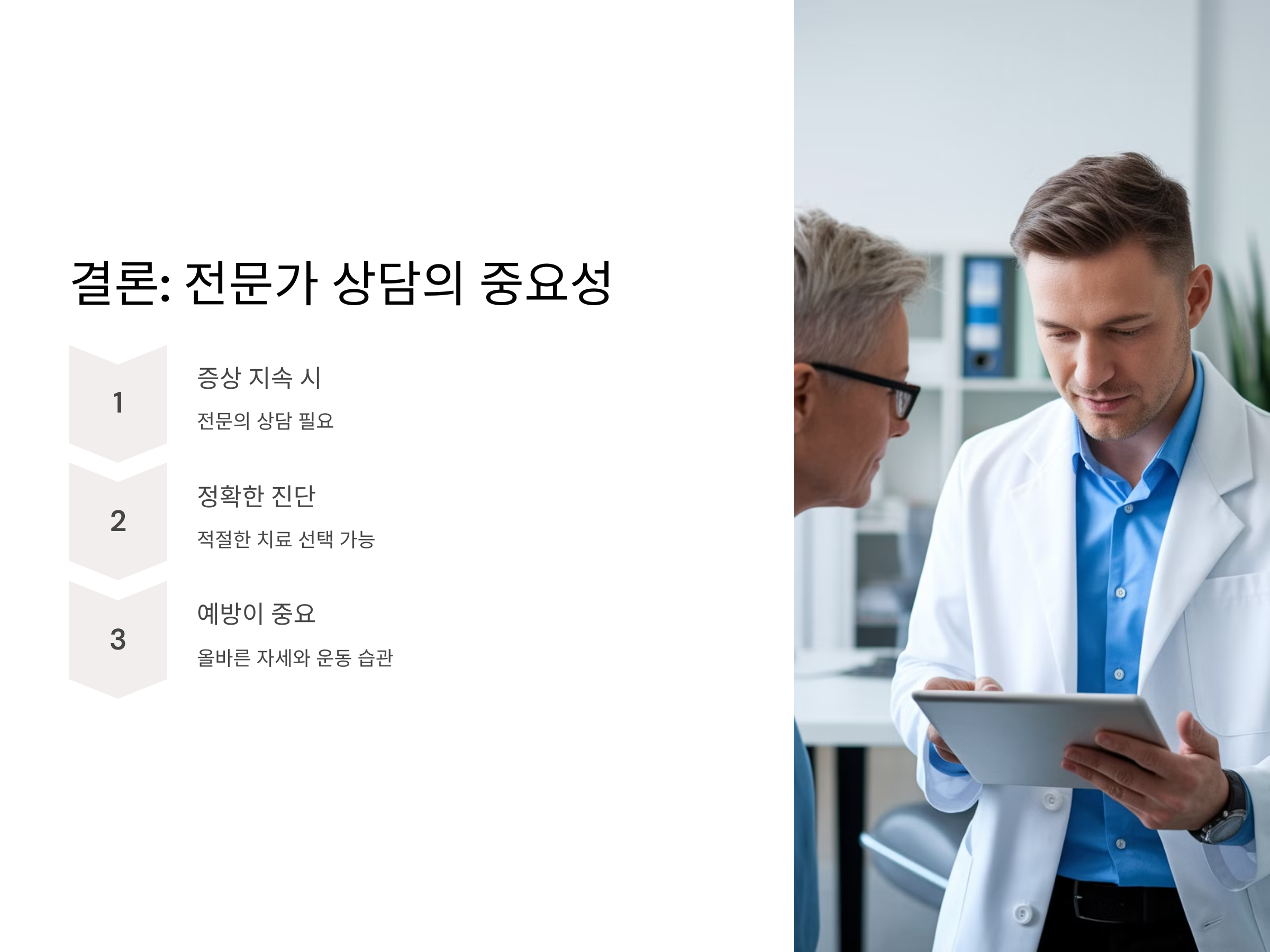 - 수술 치료: 관절의 구조적 문제가 있는 경우 수술적 접근이 필요할 수 있음
