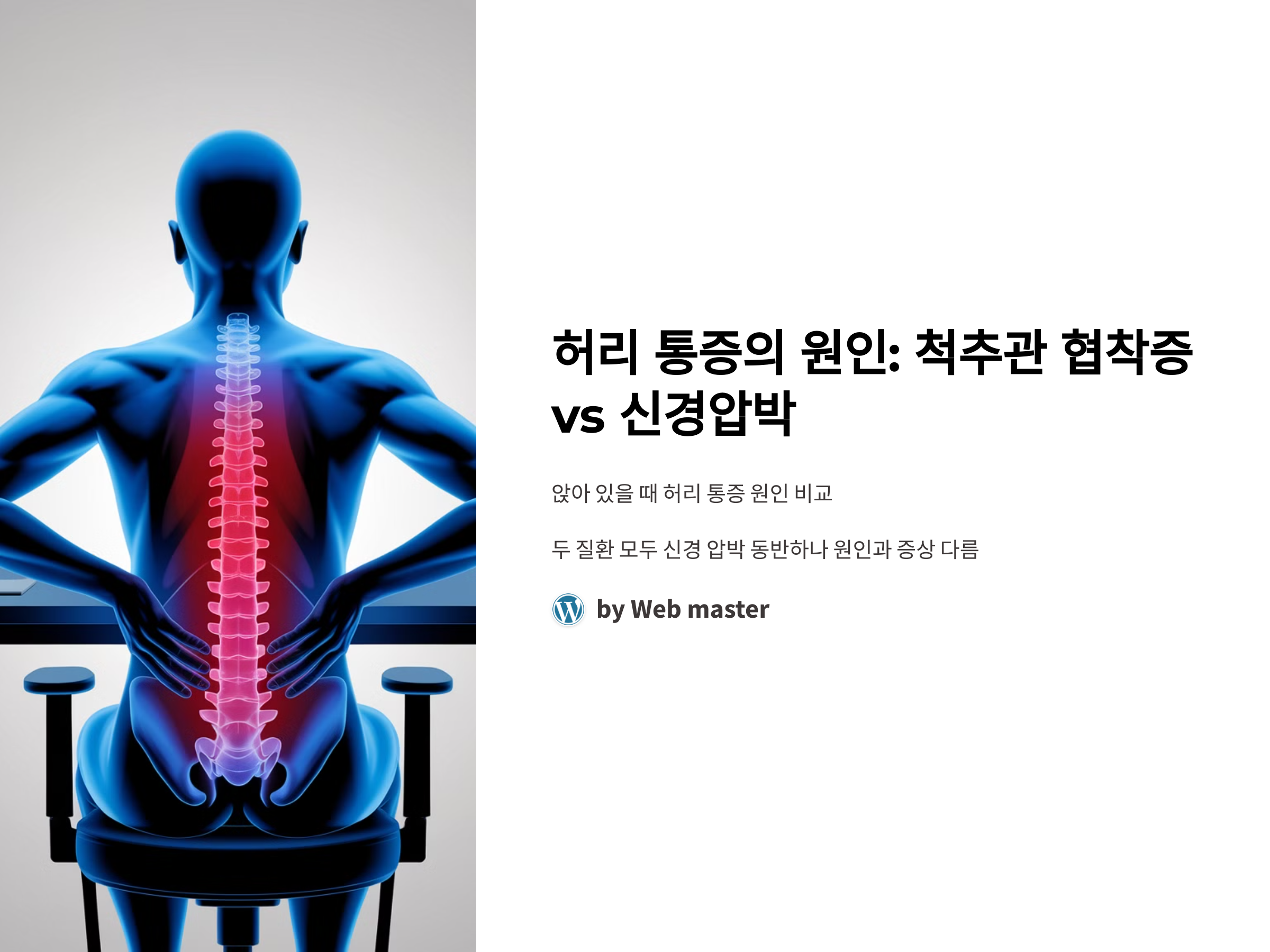 허리가 저리고 당기는 증상은 일상생활에서 매우 불편할 수 있습니다. 특히 앉아 있을 때 이런 증상이 더욱 두드러지며, 그 원인은 여러 가지가 있을 수 있습니다. 가장 흔한 원인 중 두 가지는 척추관 협착증과 신경압박입니다. 이 두 가지 질환은 모두 허리 통증을 유발할 수 있지만, 그 원인과 증상은 다릅니다. 이 글에서는 두 가지 질환을 비교하여 각기 다른 특징을 살펴보겠습니다.