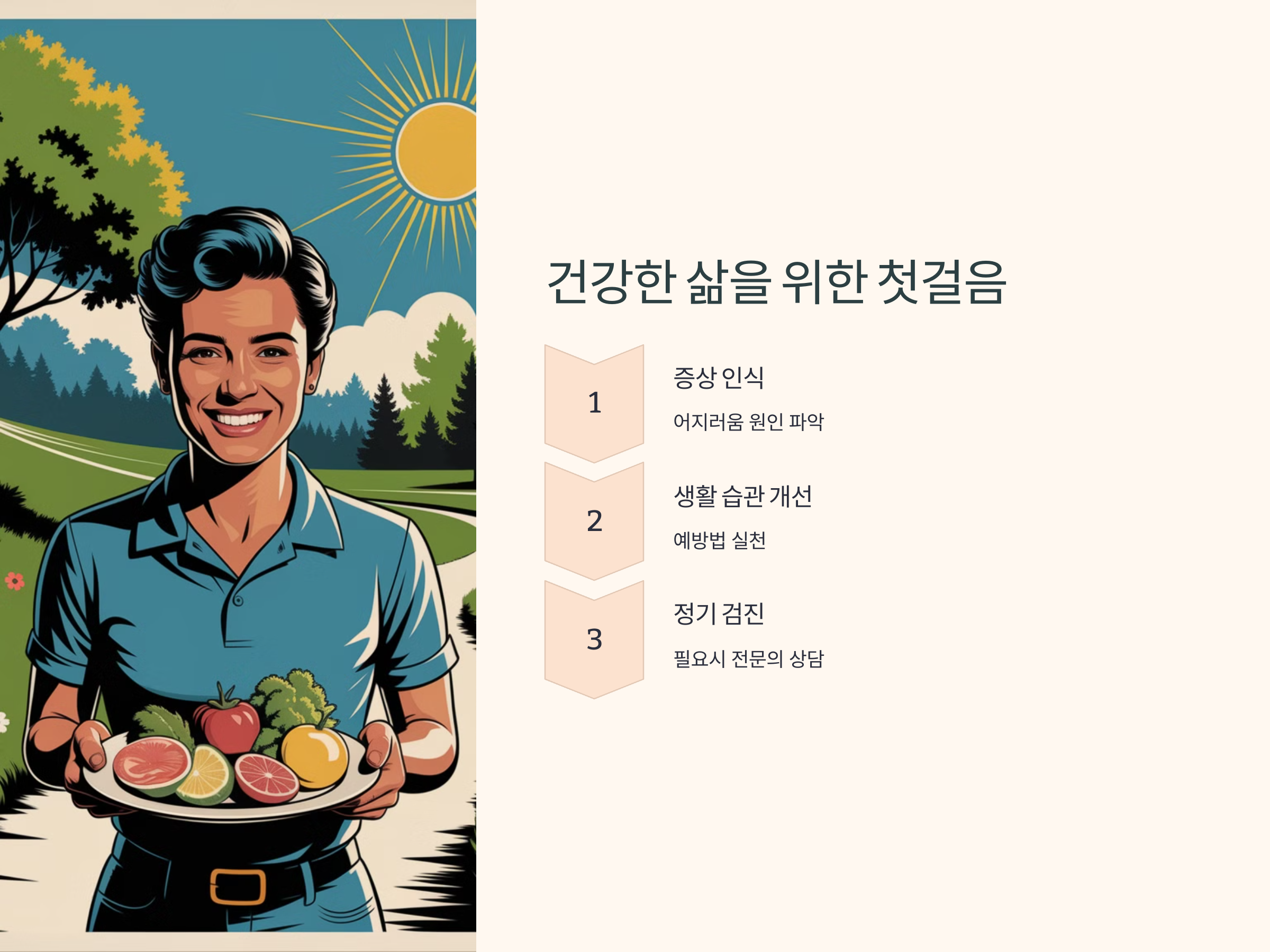 내 증상이 어떤 원인에서 비롯된 것인지 확인하고, 건강한 생활습관을 유지하여 어지러움을 예방하세요!