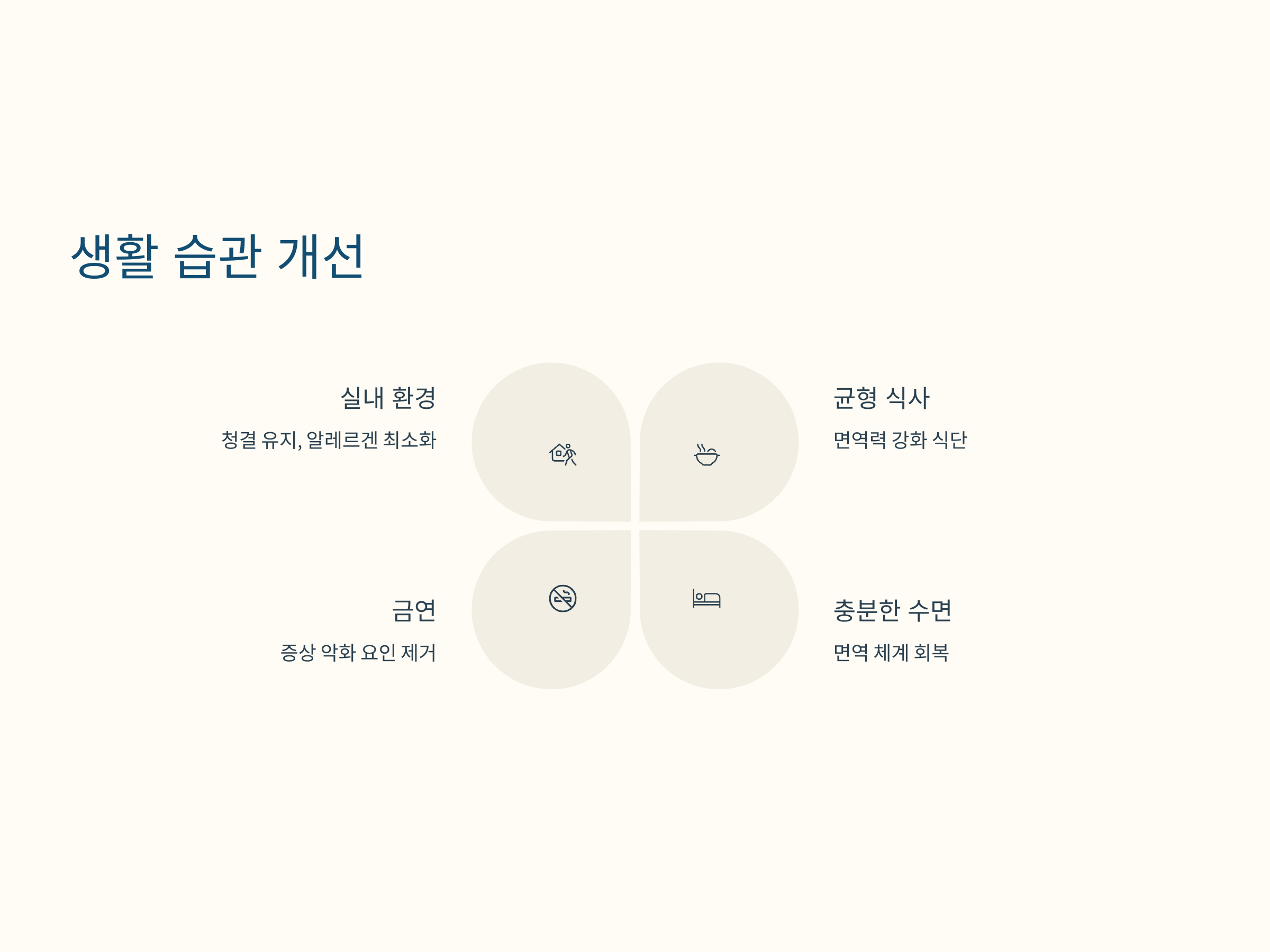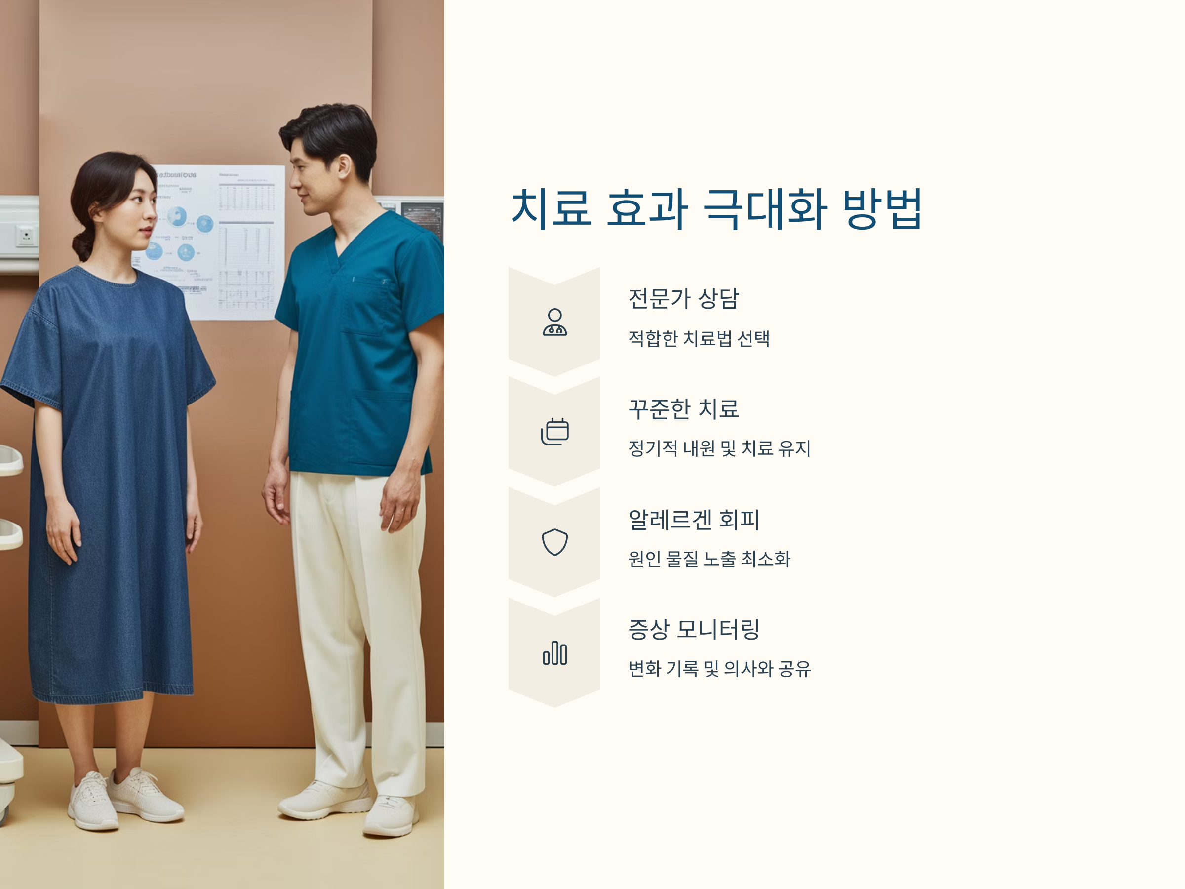 알레르기 비염 치료를 보다 효과적으로 진행하려면 면역 요법과 함께 생활 습관을 개선하는 것이 중요합니다. 예를 들어, 실내 환경을 청결하게 유지하고, 알레르기를 유발하는 물질에 대한 노출을 최소화하는 노력이 필요합니다. 또한, 면역력을 높이기 위해 균형 잡힌 식사를 하고 충분한 수면을 취하는 것이 중요합니다.