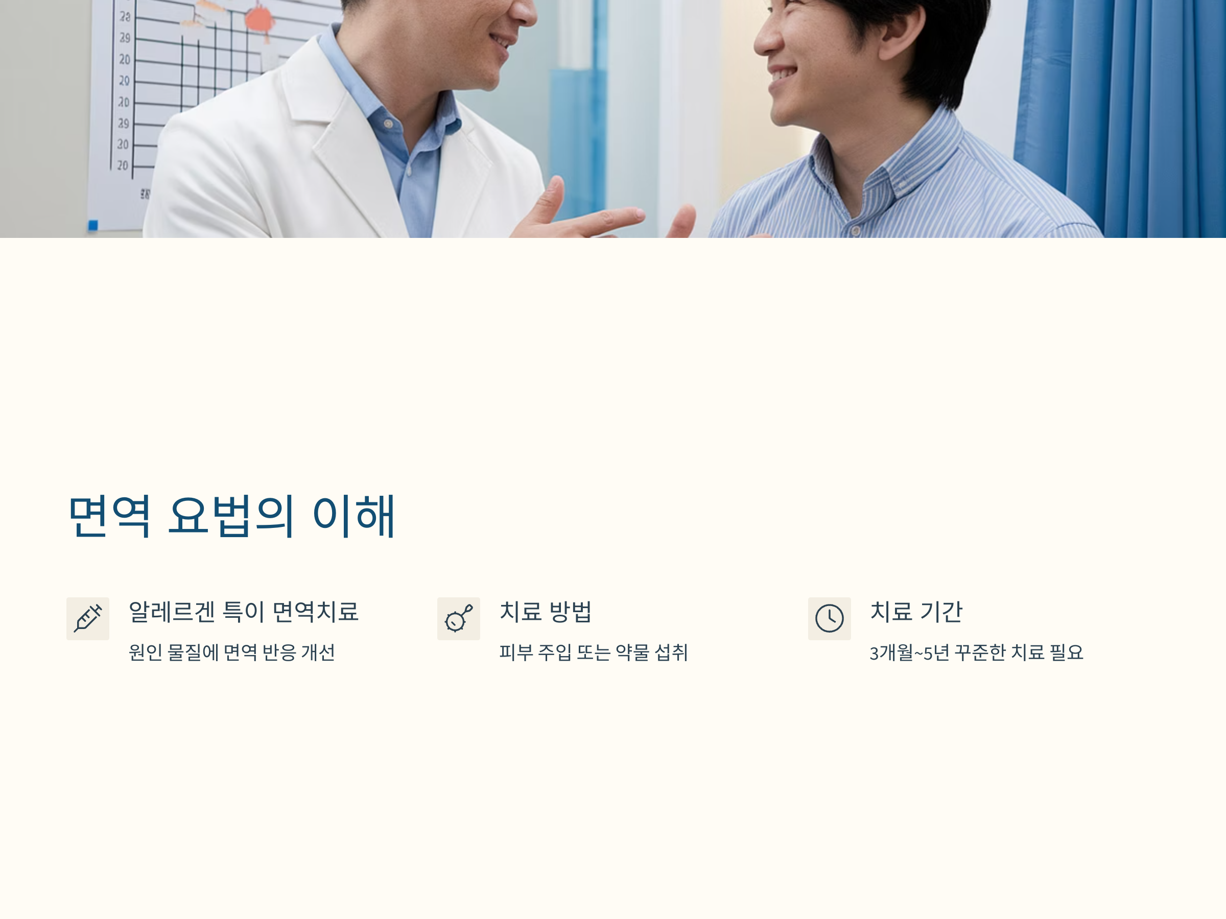 이 치료는 일반적인 약물로 증상을 완화하는 것보다 더 근본적인 해결책을 제공할 수 있습니다. 또한, 면역 요법은 치료가 완료된 후에도 알레르기 비염 증상이 재발하지 않거나, 증상이 경미하게 나타날 가능성이 높습니다. 그러나 치료 효과를 보려면 3개월에서 5년 정도의 시간이 필요하며, 그동안 꾸준히 치료를 받아야 합니다.