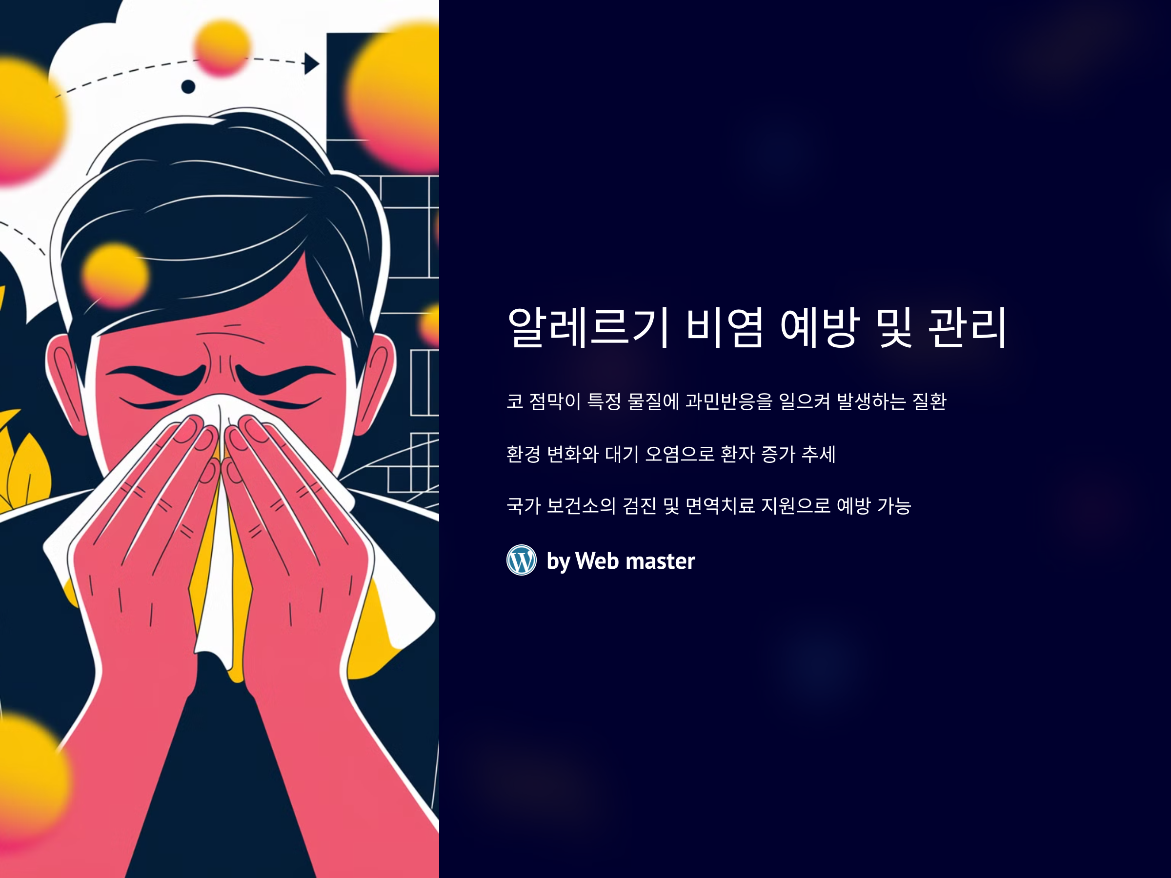 알레르기 비염은 코 점막이 특정 물질(알레르겐)에 과민반응을 일으켜 발생하는 질환으로, 콧물, 재채기, 코막힘 등의 증상이 나타납니다. citeturn0search0 최근 환경 변화와 대기 오염 등으로 인해 알레르기 비염 환자가 증가하고 있습니다. 이러한 상황에서 국가 보건소의 알레르기 검진 및 면역치료 지원은 예방과 관리에 큰 도움이 됩니다.