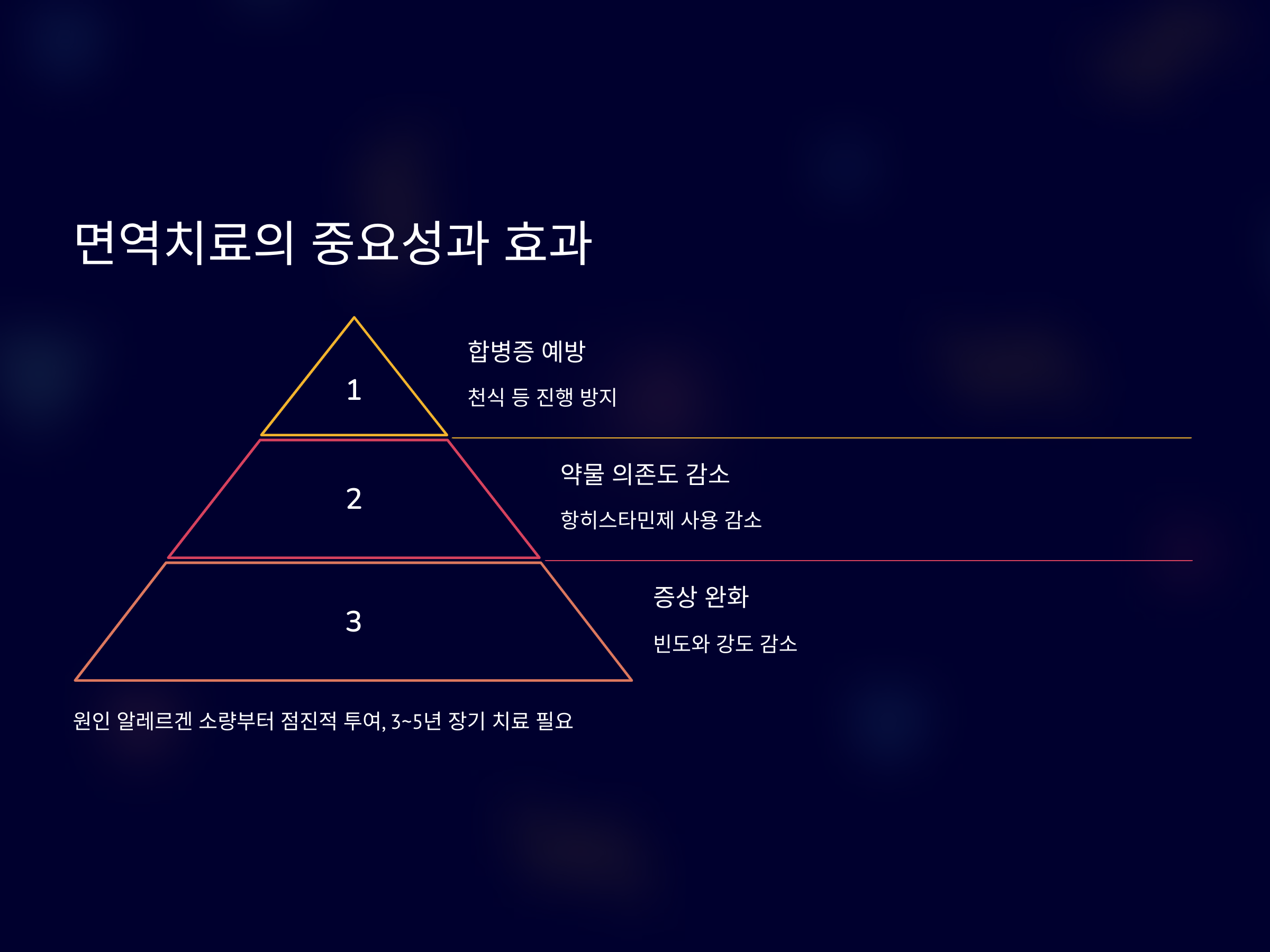 면역치료는 3~5년의 장기간 치료가 필요하며, 전문 의료진의 지도 아래 진행되어야 합니다.