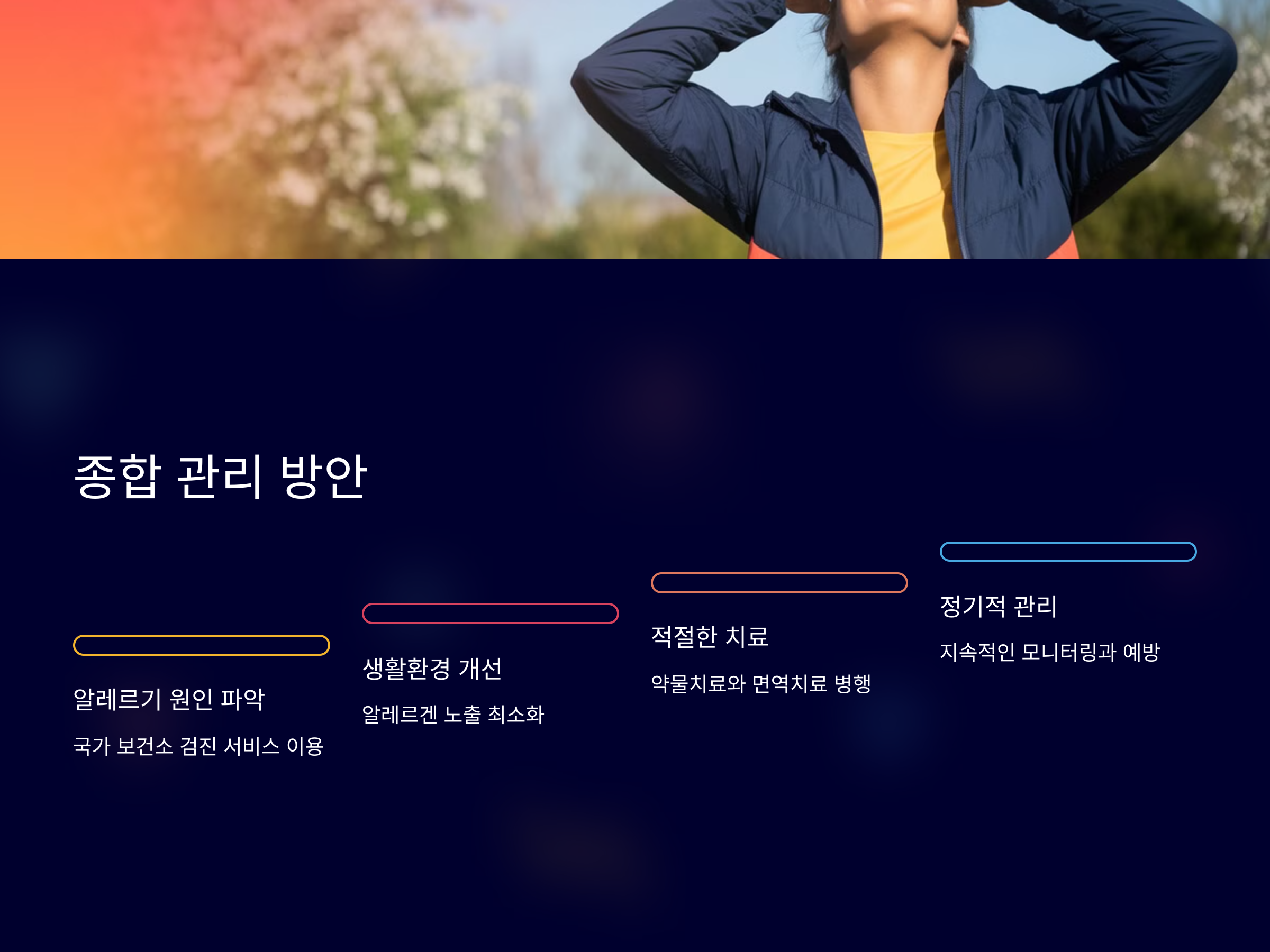 - 교육 프로그램: 알레르기 비염 관리 방법에 대한 교육을 제공합니다.
