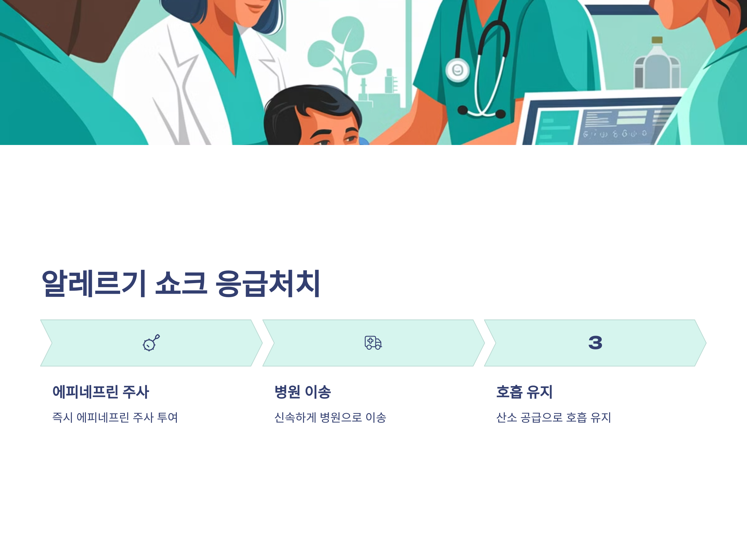 - 병원 이송: 에피네프린 주사 후에도 증상이 계속된다면, 빠르게 병원으로 이송하여 전문적인 치료를 받아야 합니다.