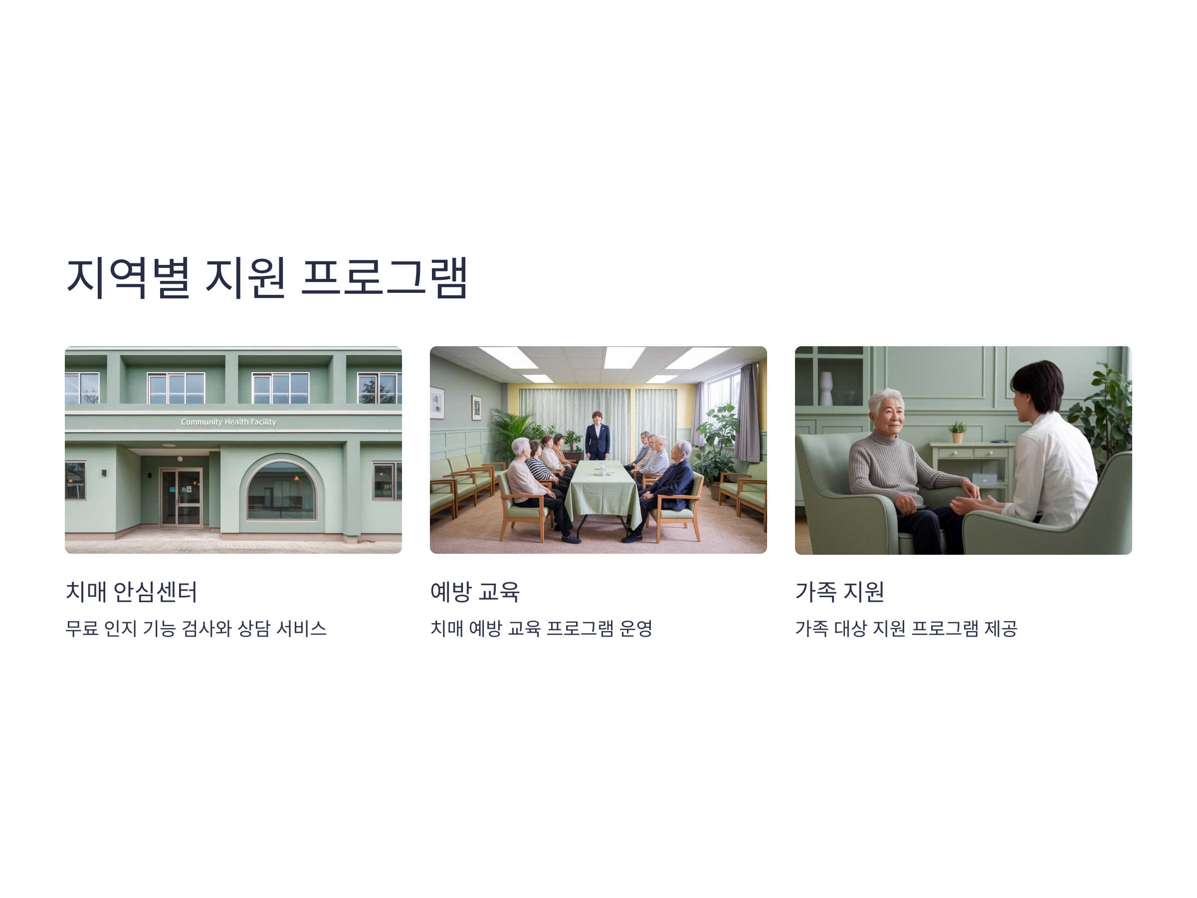 일부 지방자치단체에서는 치매 예방과 관리를 위해 추가적인 지원 프로그램을 운영하고 있습니다. 예를 들어, 치매 안심센터에서는 무료 인지 기능 검사와 상담 서비스를 제공하며, 치매 예방 교육과 가족 지원 프로그램도 운영하고 있습니다. 이러한 지역별 프로그램을 활용하면 더욱 효과적으로 알츠하이머병을 예방하고 관리할 수 있습니다.