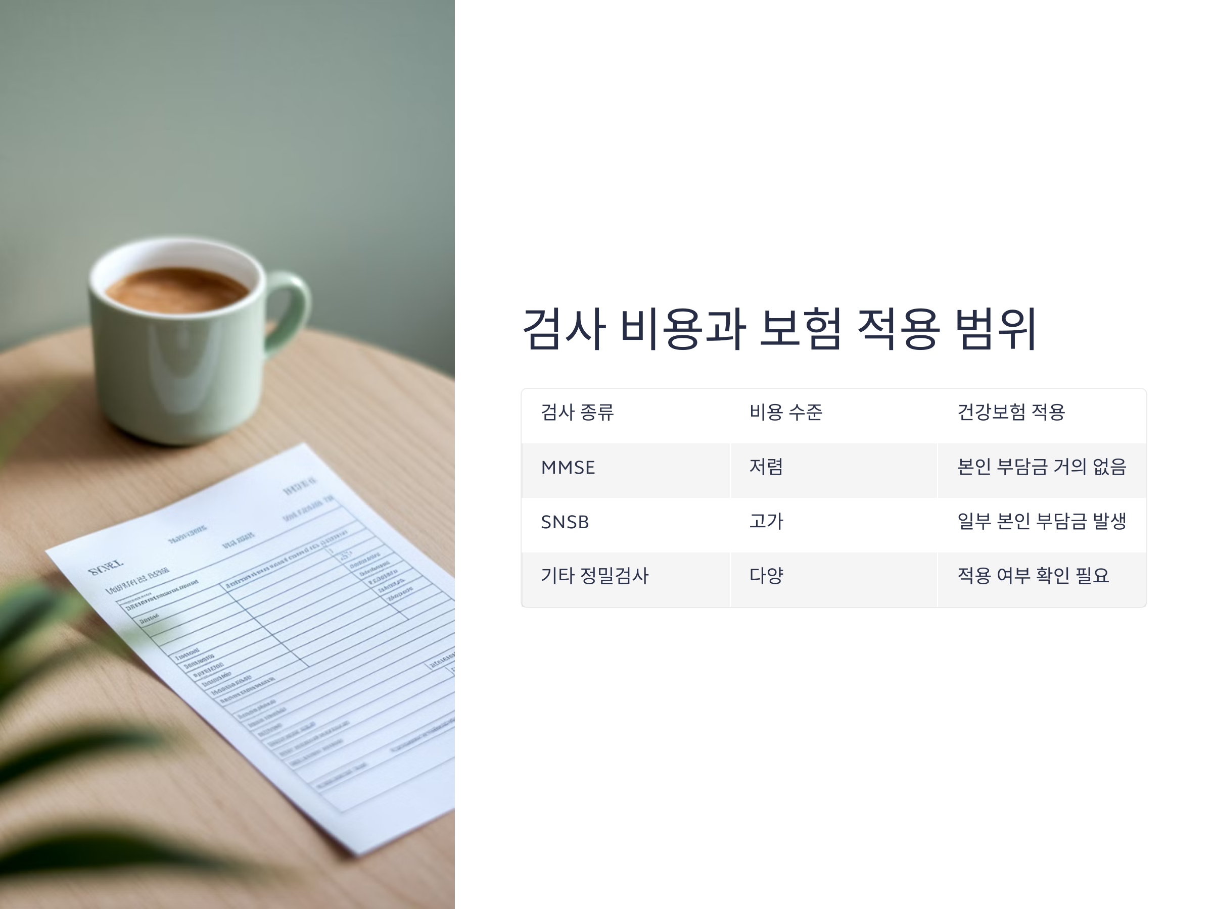 인지 기능 검사 비용과 건강보험 적용 범위