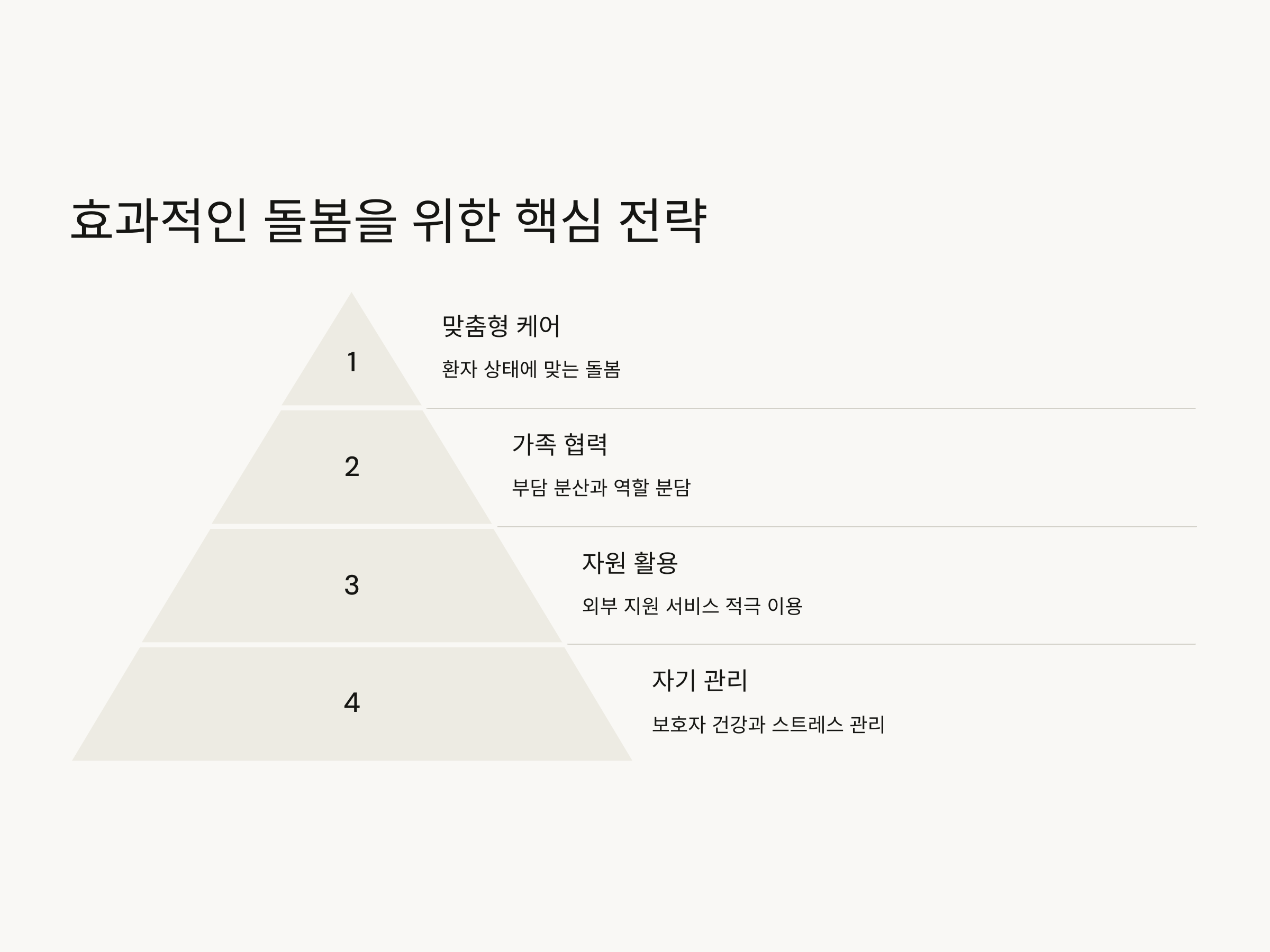 알츠하이머 환자를 돌보는 것은 어려운 일이지만, 올바른 정보와 적절한 돌봄 방법을 실천하면 환자와 가족 모두의 삶의 질을 높일 수 있습니다. 환자의 상태에 따라 맞춤형 케어를 제공하고, 가족 간 협력을 통해 부담을 분산하는 것이 중요합니다. 또한, 보호자 스스로의 건강 관리에도 신경 써야 하며, 외부 자원을 적극 활용하는 것이 장기적인 돌봄에 도움이 됩니다.