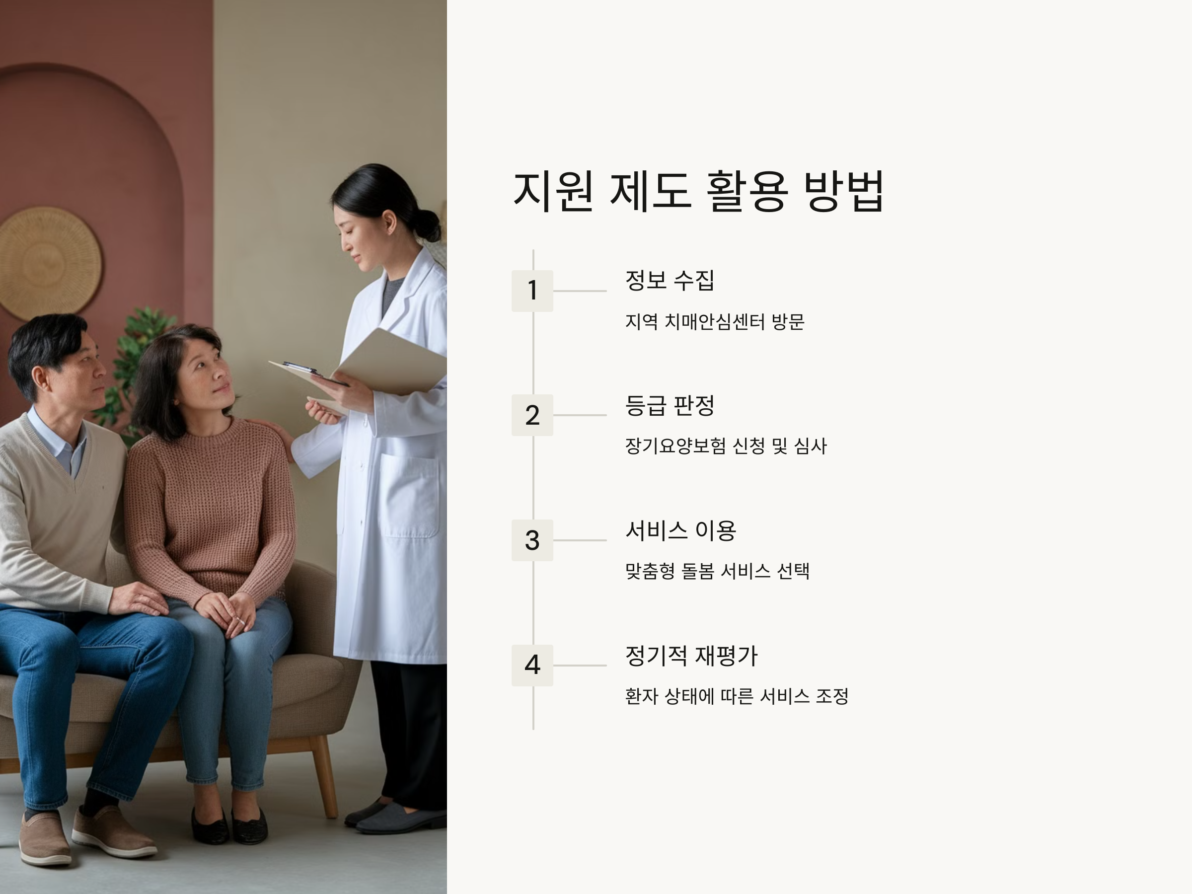 정부와 지역사회에서는 알츠하이머 환자와 가족을 위한 다양한 지원 제도를 제공하고 있습니다. 치매안심센터에서는 초기 치매 상담부터 예방 프로그램, 돌봄 서비스까지 다양한 서비스를 제공합니다. 또한, 장기요양보험을 통해 간병 비용을 지원받을 수 있으며, 치매 치료 관리비 지원 사업을 통해 약제비 및 진료비를 지원받을 수 있습니다. 이러한 제도를 적극 활용하여 돌봄의 부담을 줄일 수 있습니다.