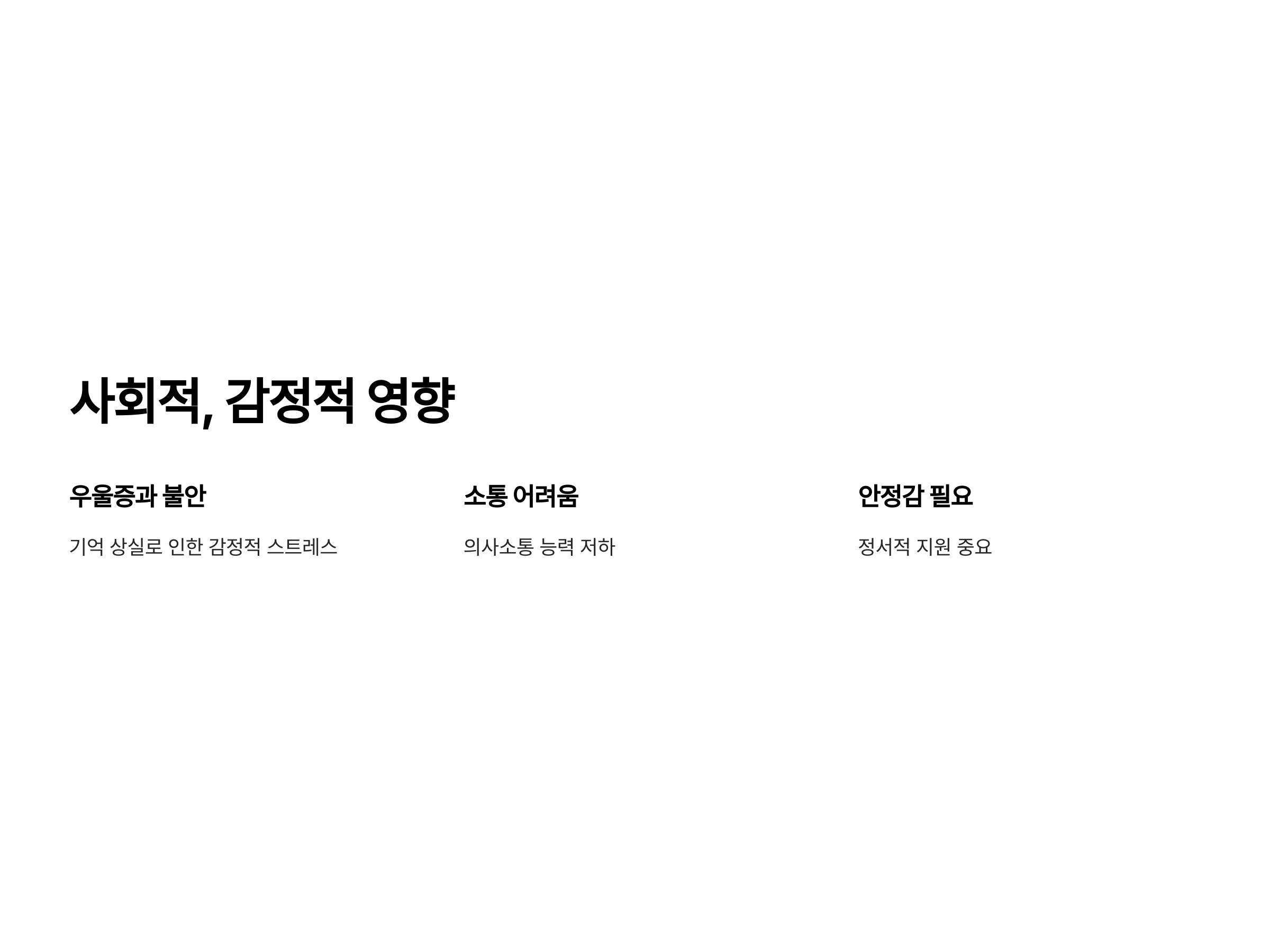 알츠하이머 후기는 단순히 기억력 저하뿐만 아니라 사회적이고 감정적인 면에서도 큰 영향을 미칩니다. 환자는 자신이 기억하지 못하는 상황에 대해 스트레스를 받을 수 있으며, 이는 점차적인 우울증이나 불안증으로 이어질 수 있습니다. 특히, 자신이 주변 사람들을 알아보지 못할 때 환자 스스로 큰 충격을 받을 수 있습니다. 이때 가족이나 돌봄인은 환자에게 적절한 정서적 지원을 제공하는 것이 중요합니다.