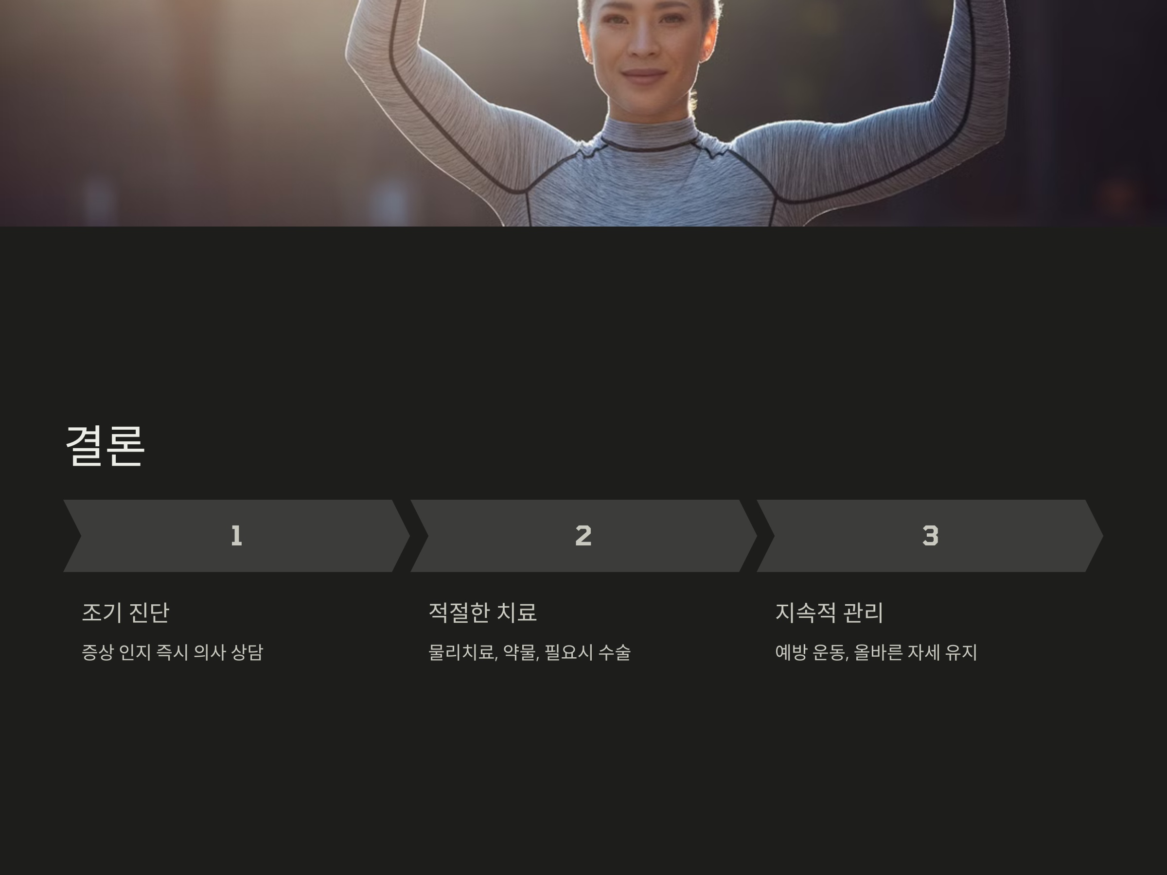 어깨 충돌 증후군은 빠른 치료와 예방이 중요한 질환입니다. 팔을 올릴 때 통증이나 뻣뻣함을 느낄 경우, 조기에 치료를 받는 것이 중요하며, 예방을 위한 운동과 자세 교정이 필요합니다. 꾸준한 관리와 치료를 통해 어깨의 건강을 지킬 수 있습니다.