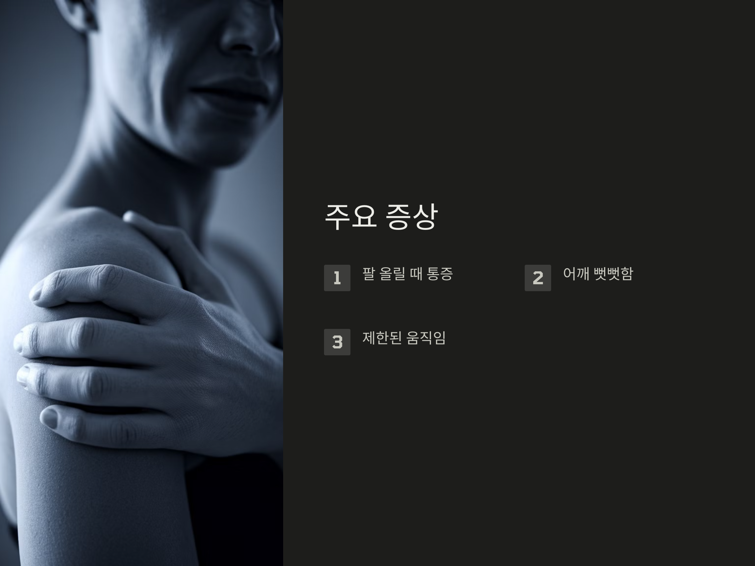 팔을 머리 위로 올릴 때나 옆으로 들 때 통증이 발생하는 것은 어깨의 회전근개가 충돌을 일으키거나, 어깨의 견봉과 상완골이 부딪히는 현상 때문입니다. 이로 인해 어깨를 움직일 때마다 통증이 심해지고, 일상적인 활동에 지장을 줄 수 있습니다.