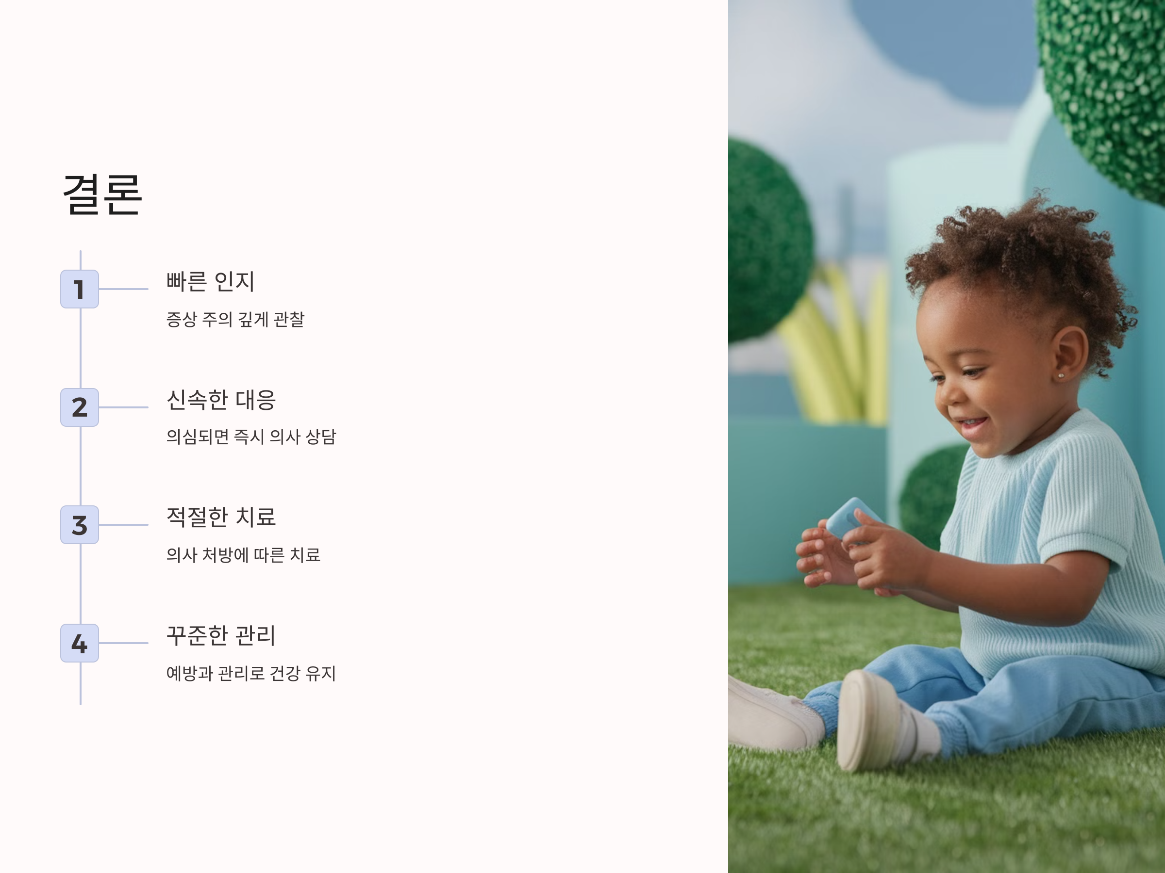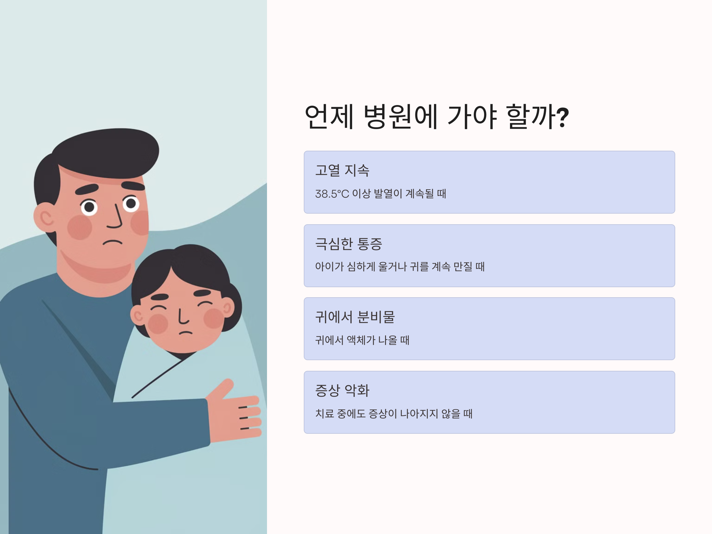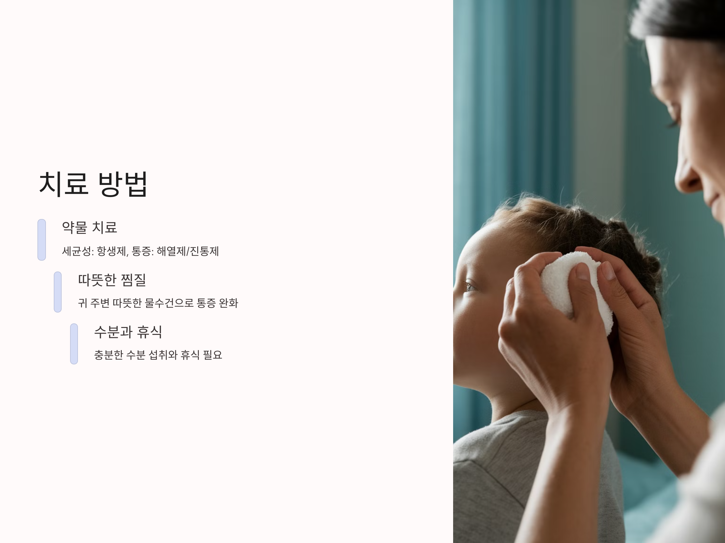 영유아 중이염은 적절한 치료를 통해 빠르게 회복할 수 있습니다. 치료 방법은 다음과 같습니다: