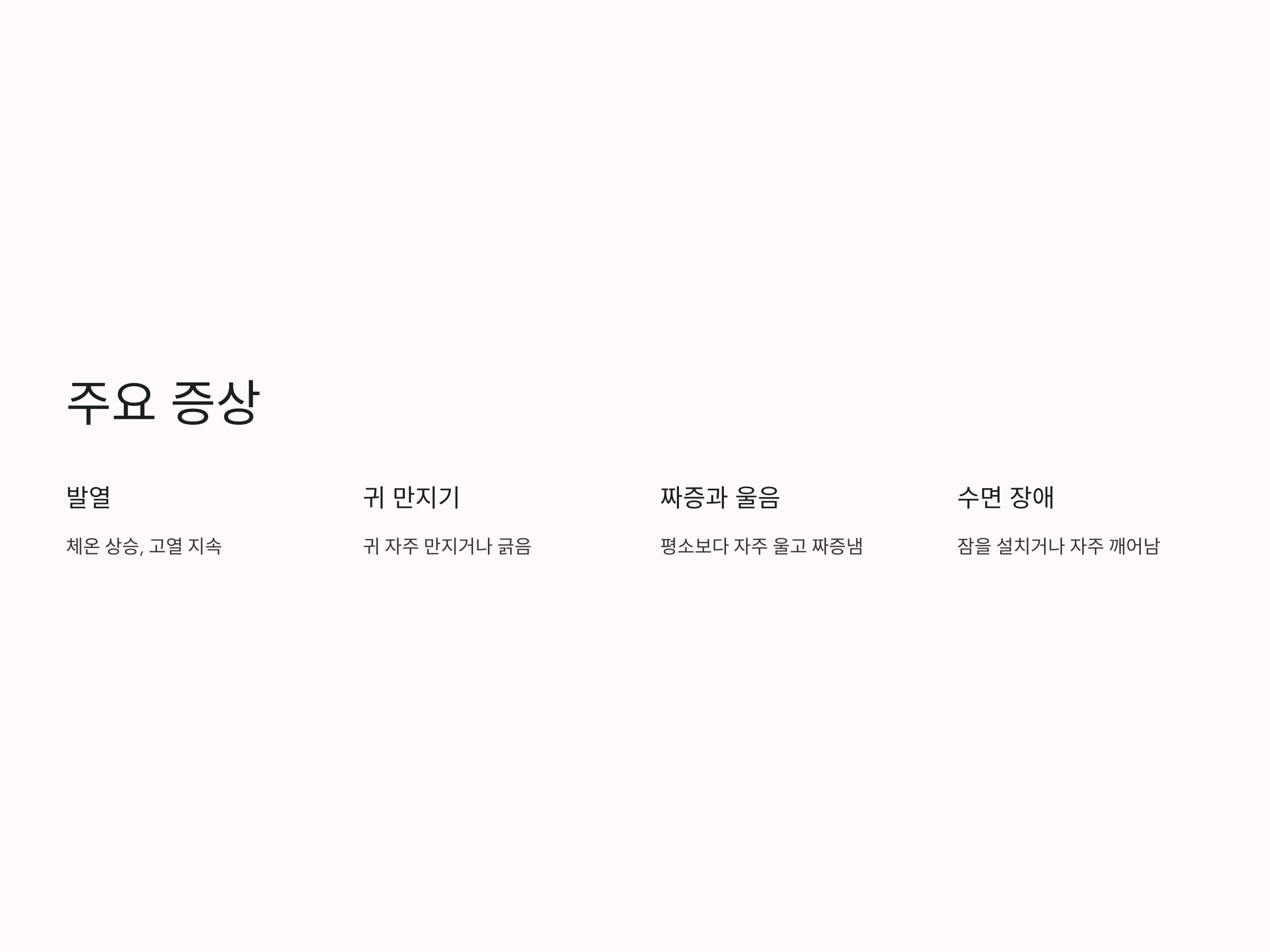 아이의 체온이 갑자기 상승하면서 발열이 나타날 수 있습니다. 특히 고열이 지속되는 경우, 중이염을 의심할 수 있습니다. 발열은 몸에서 감염과 싸우는 과정에서 나타나는 자연스러운 반응이지만, 이때 적절한 해열제와 충분한 수분 섭취가 필요합니다.