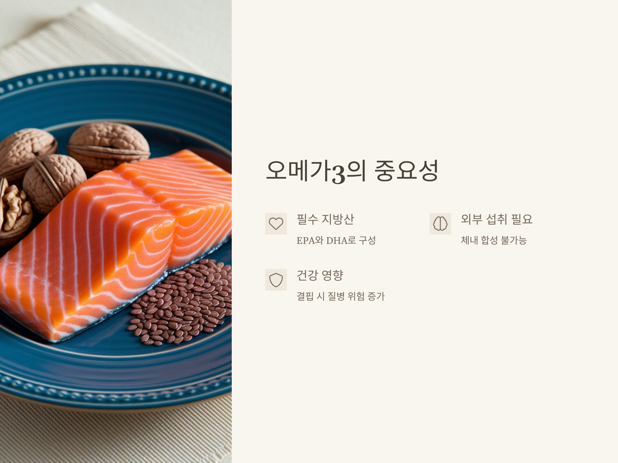 오메가3는 두 가지 주요 종류, EPA(에이코사펜타엔산)와 DHA(도코사헥사엔산)로 구성되어 있으며, 이 두 성분은 신체에서 합성되지 않기 때문에 외부에서 섭취해야만 합니다. 따라서 오메가3 결핍이 지속되면 다양한 질병의 위험이 커질 수 있습니다. 오메가3 결핍은 피로, 우울감, 면역력 저하, 심혈관 질환 등을 유발할 수 있기 때문에, 이를 예방하거나 진단하는 것이 중요합니다.