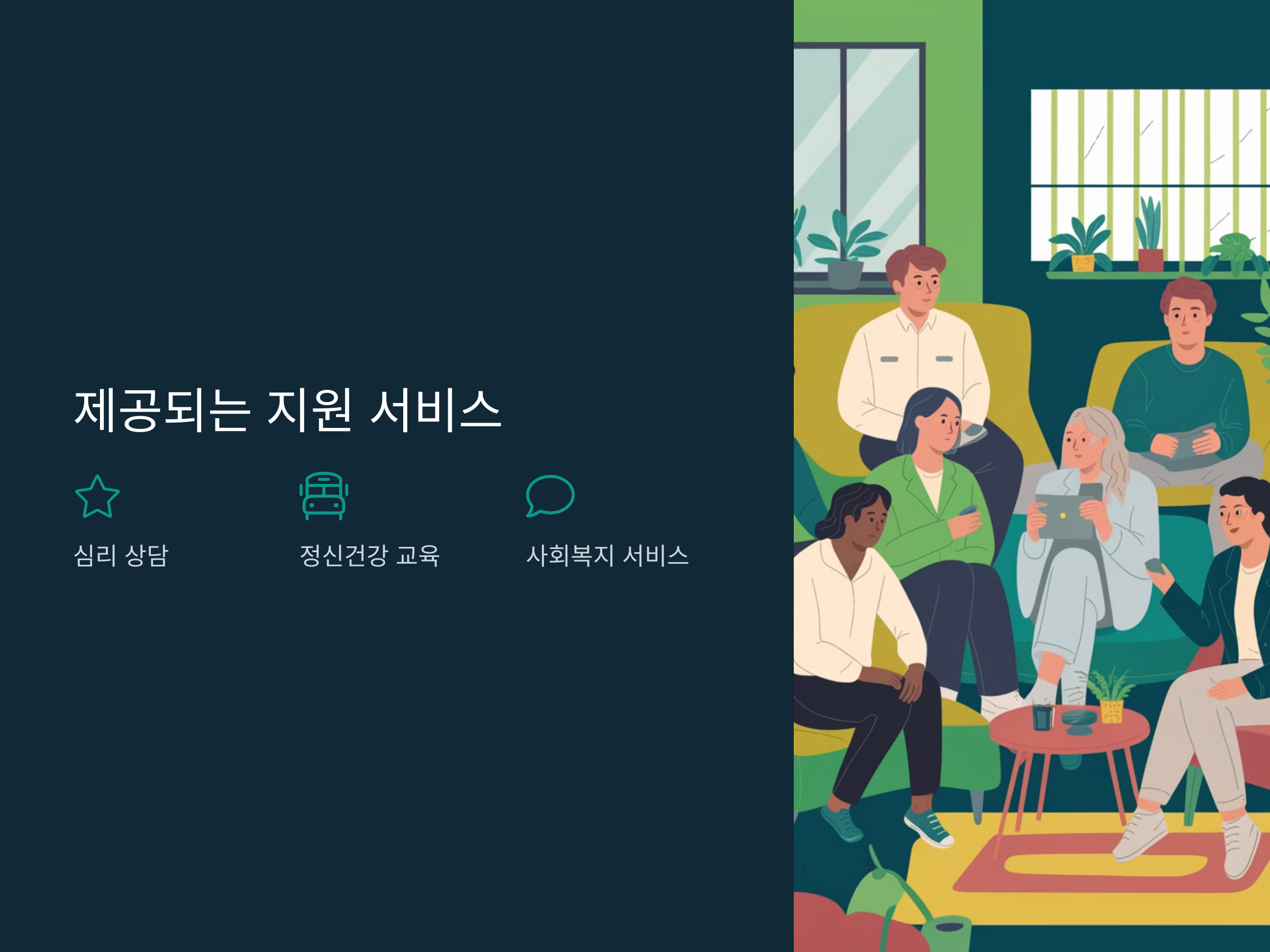 또한, 정신건강복지센터에서는 사회복지 서비스를 통해 정신건강에 어려움을 겪는 이들에게 사회적 지원을 아끼지 않습니다. 경제적인 어려움이나 일상적인 문제로 인해 치료를 받기 어려운 사람들을 위해 복지 서비스도 제공하므로, 이를 통해 추가적인 도움을 받을 수 있습니다.