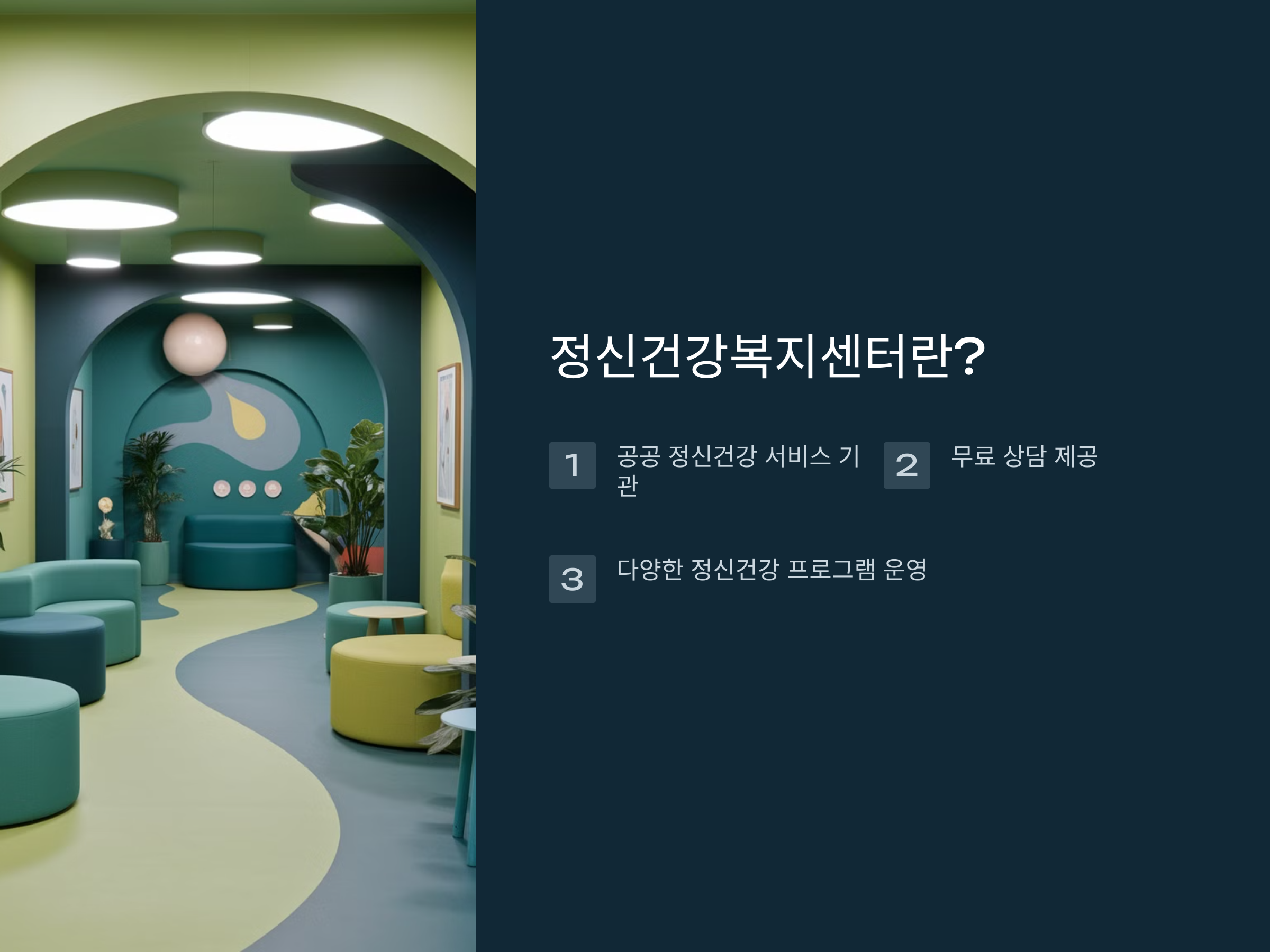 정신건강복지센터는 국가와 지방자치단체에서 운영하는 공공 정신건강 서비스 기관입니다. 이곳은 정신질환에 대한 상담뿐만 아니라 예방, 치료, 회복을 위한 다양한 프로그램을 제공합니다. 각 센터는 우울증, 불안, 스트레스 관리 등 다양한 정신건강 문제를 다루며, 무료 상담 서비스를 제공합니다. 또한, 전문가와 함께 상담을 받을 수 있는 기회가 제공되므로 많은 이들에게 중요한 정신건강 지원의 장소로 자리잡고 있습니다.