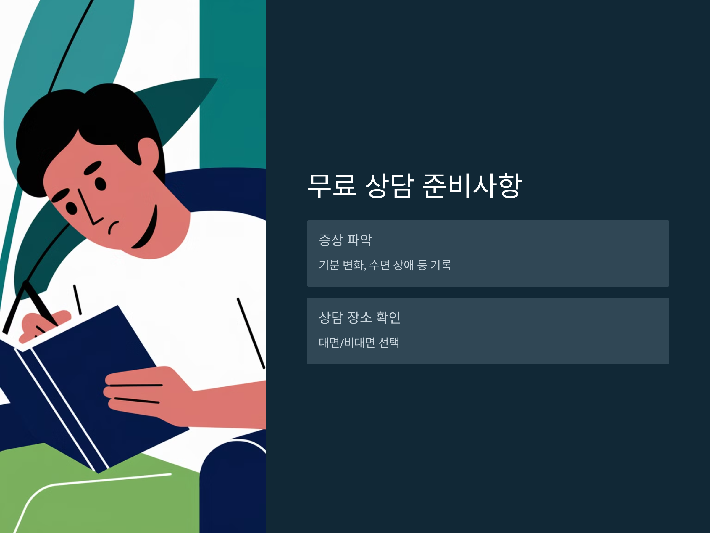 - 심리 평가: 전문 상담사가 우울증 증상 등을 평가하여 상담 방향을 결정합니다.
