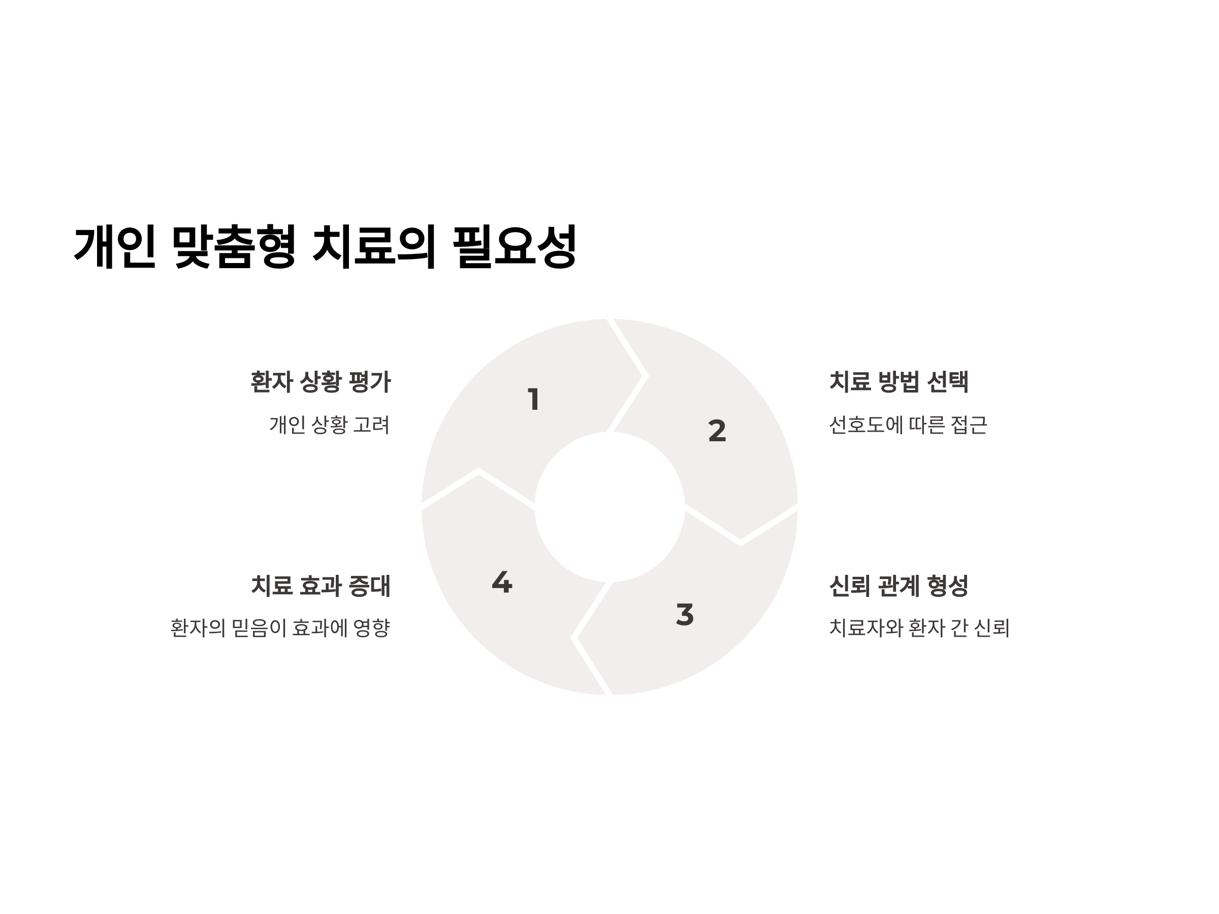 각 환자의 상황과 선호도에 따라 치료 방법을 선택하는 것이 중요합니다. 환자와 치료자 간의 신뢰 관계 형성과 치료에 대한 환자의 믿음이 치료 효과에 큰 영향을 미칩니다. citeturn0search0
