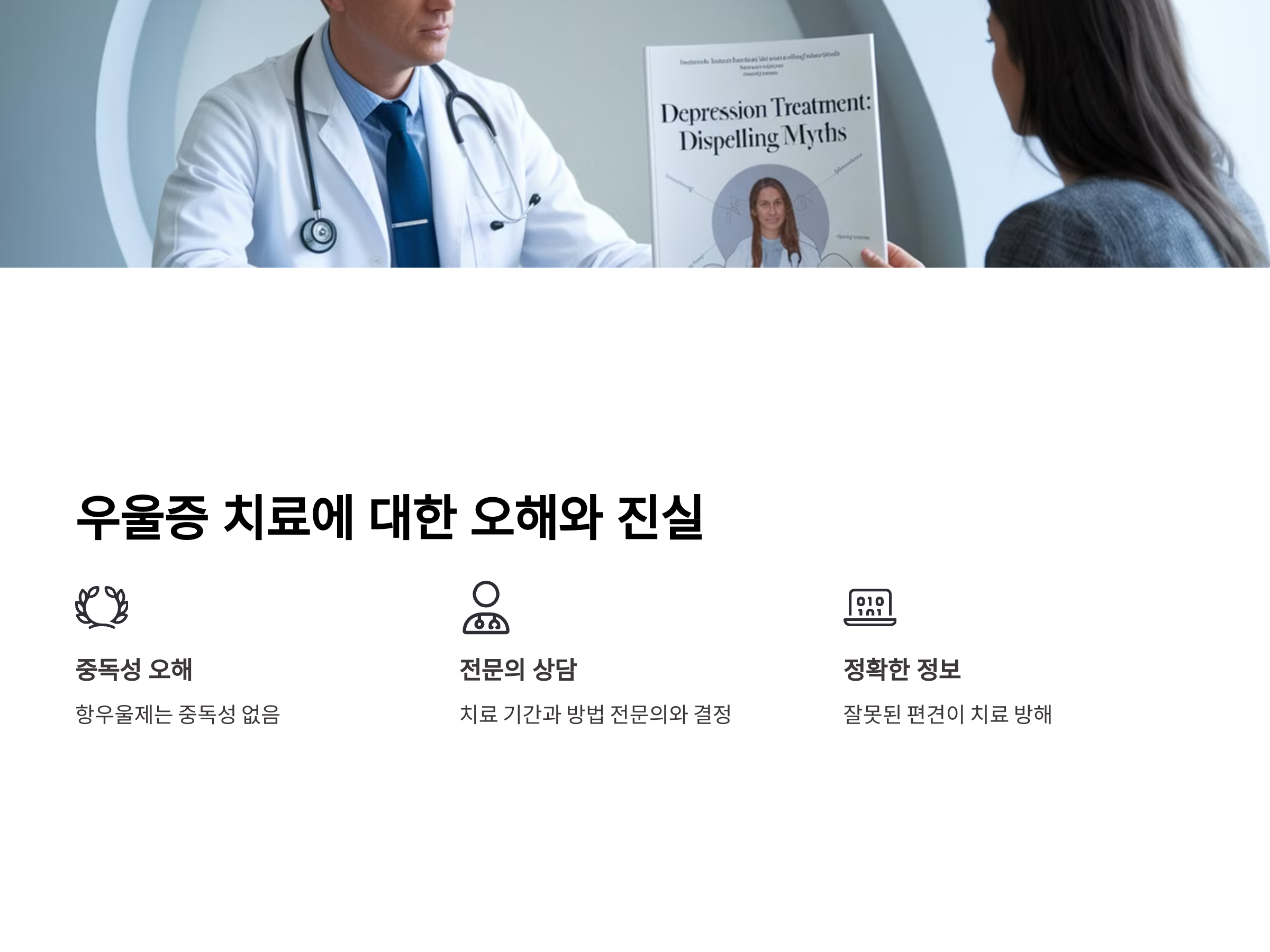 우울증 치료에 대한 잘못된 정보나 편견은 치료를 방해할 수 있습니다. 항우울제는 중독성이 없으며, 치료 기간과 방법은 전문의와 상의하여 결정하는 것이 중요합니다. citeturn0search2
