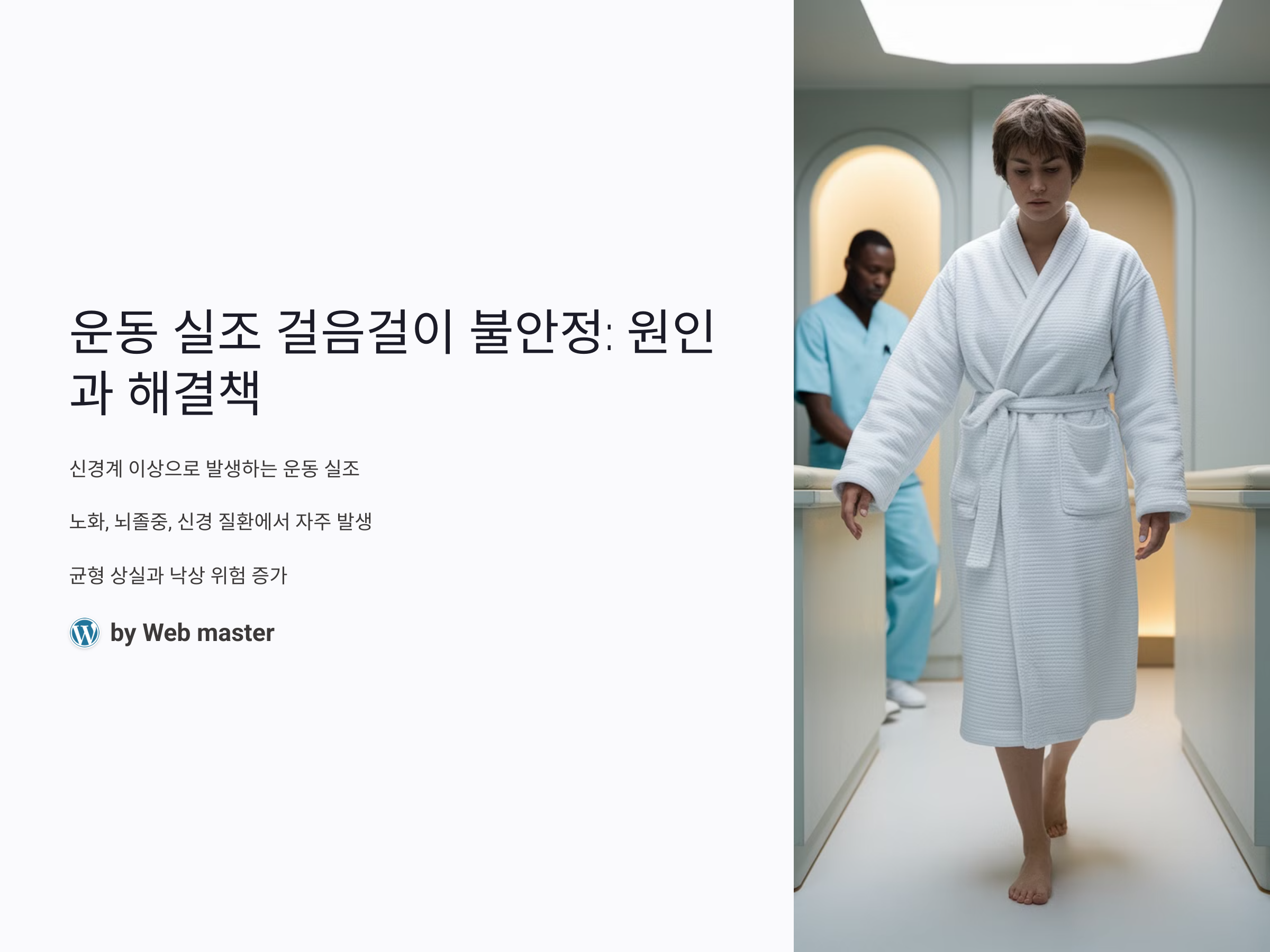 운동 실조(운동 조정의 문제)는 주로 신경계의 이상으로 발생하며, 걸음걸이 불안정은 그 가장 눈에 띄는 증상 중 하나입니다. 이런 증상은 노화, 뇌졸중, 또는 신경과 관련된 질환에서 자주 나타나며, 일상생활에서 큰 불편을 초래할 수 있습니다. 특히 운동 실조가 동반되는 걸음걸이 불안정은 걷는 데 있어 균형을 잃거나 넘어질 위험을 높일 수 있기 때문에 이를 제대로 이해하고 적절한 치료와 운동이 필요합니다. 이 글에서는 운동 실조와 걸음걸이 불안정의 원인, 진단 방법, 그리고 이를 해결하기 위한 치료법에 대해 깊이 알아보겠습니다.