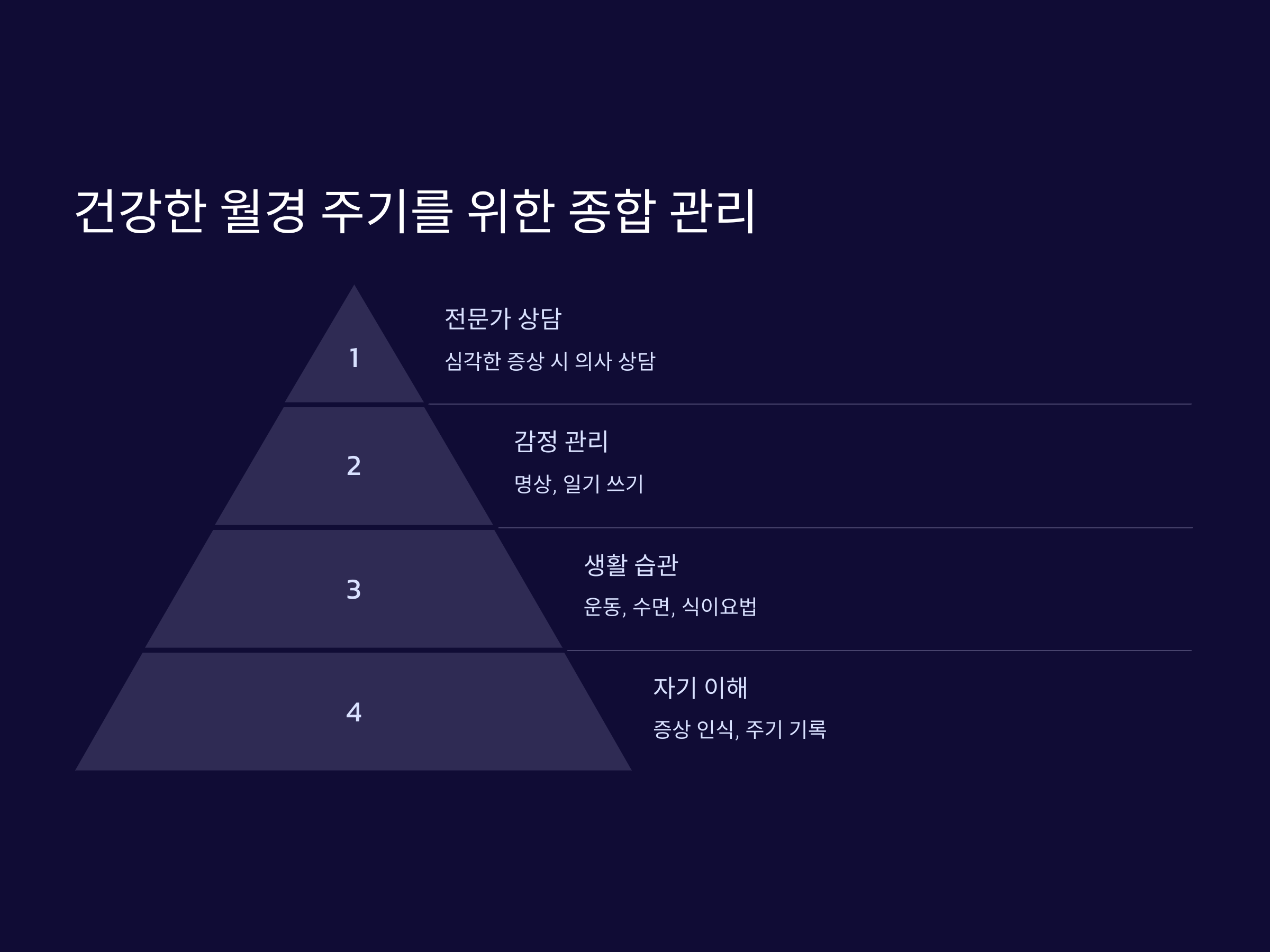 이러한 요인들을 관리하면 PMS로 인한 감정 기복을 줄이는 데 큰 도움이 될 수 있다.