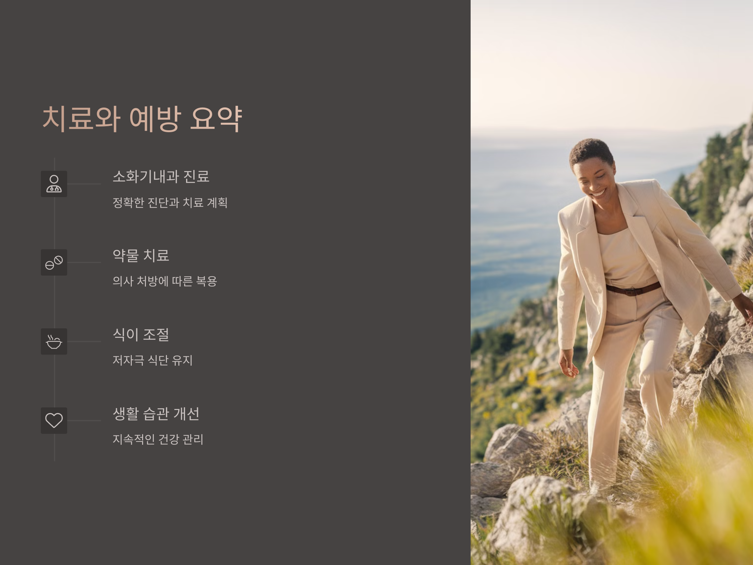 위산 과다를 예방하기 위한 생활 습관도 매우 중요합니다. 꾸준한 건강 관리가 필요하며, 올바른 생활 습관을 지키는 것이 위장 건강을 유지하는 데 도움이 됩니다.