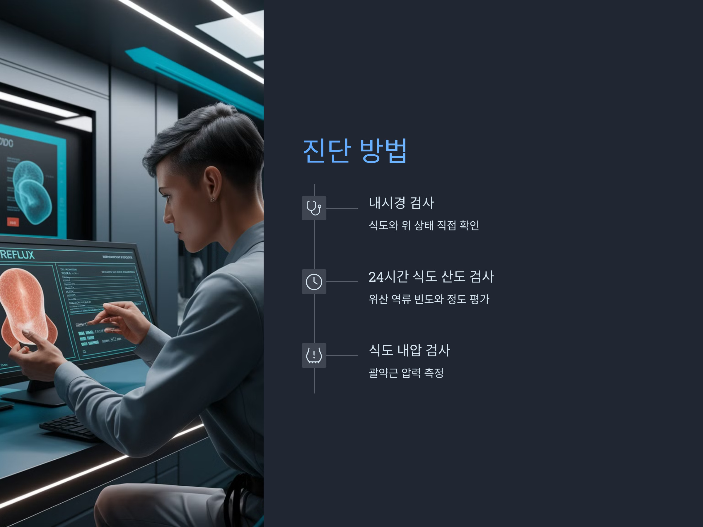 - 내시경 검사: 식도와 위의 상태를 직접 확인하여 염증이나 궤양의 유무를 판단합니다.
