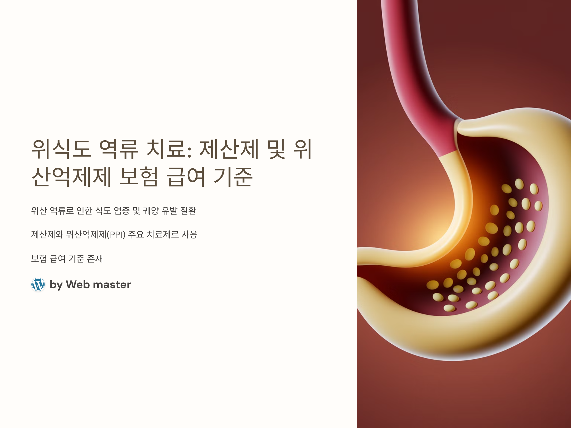 위식도역류질환(GERD)은 위산이 식도로 역류하면서 발생하는 질환으로, 식도에 염증을 일으키거나 심각한 경우에는 식도궤양 등을 유발할 수 있습니다. 이 질환은 일반적으로 위산 분비를 억제하는 약물 치료를 통해 관리됩니다. 그 중에서도 제산제와 위산억제제(PPI, Proton Pump Inhibitors)는 주요 치료제입니다. 그러나 이 약물들이 보험 급여로 제공되기 위한 기준이 존재합니다. 본 글에서는 위식도 역류 치료를 위한 제산제 및 위산억제제의 보험 급여 기준을 상세히 알아보겠습니다.